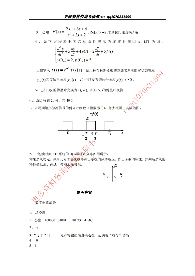 2013北京理工大学882电路、信号与系统模拟题及答案20.21免费公众号:清秋考研/QQ群836610574-学习资源网 - 分享优质学习资料