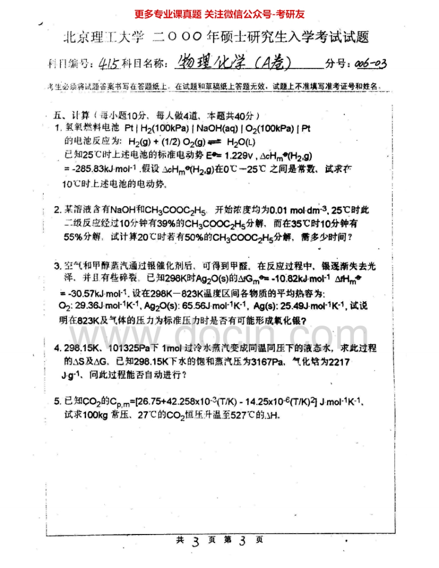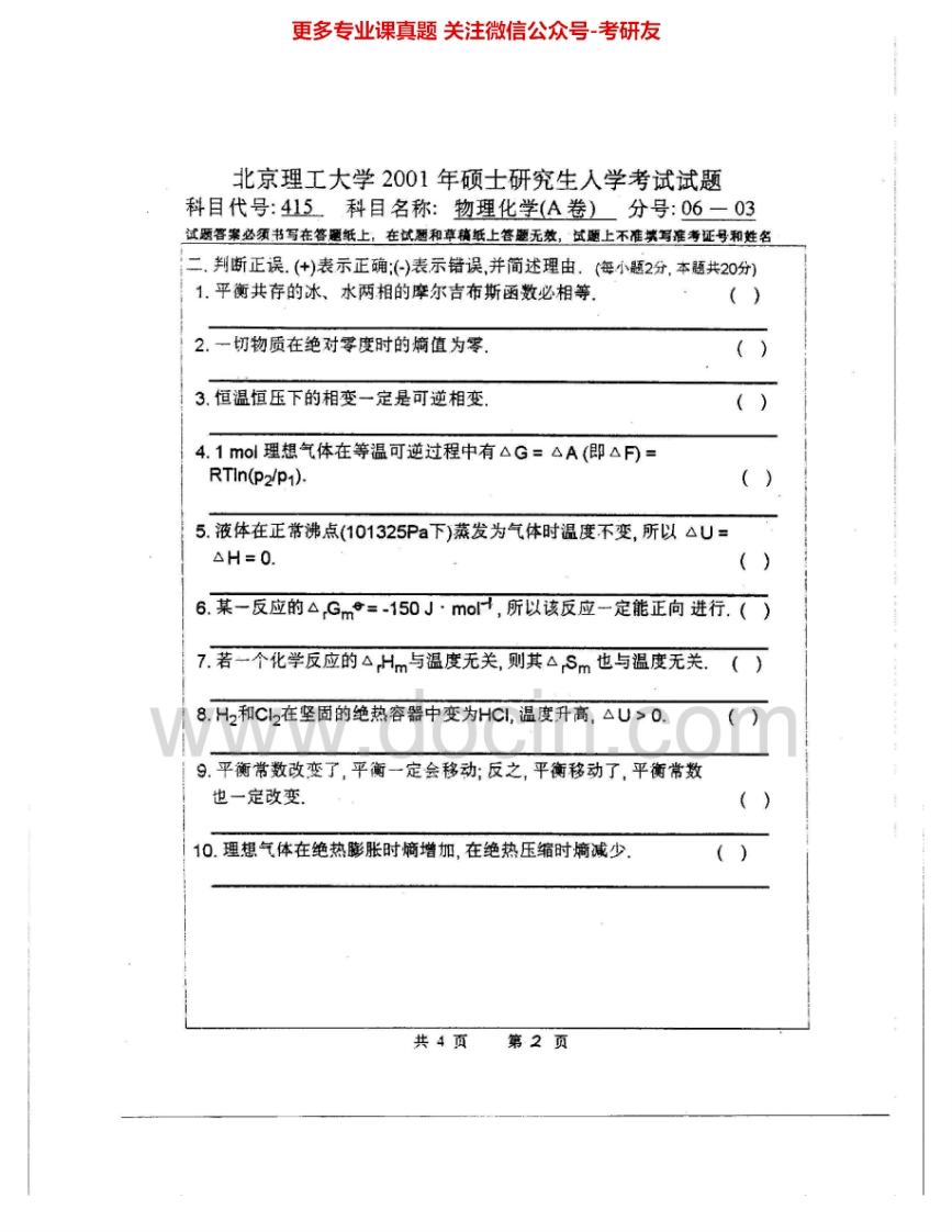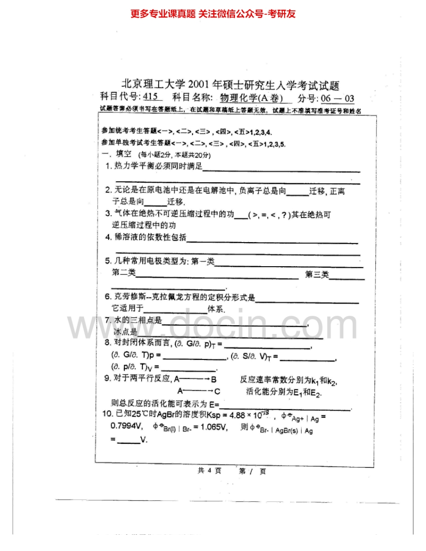 北京理工大学884物理化学(A)2000-2002、2008考研真题汇编.Image.Marked猴哥6个月前发布关注私信4.45MB16页09257北京理工大学884物理化学(A)2000-2002、2008考研真题汇编.Image.Marked此内容为免费资源,请登录后查看¥0 登录查看免费资源 第1页 / 共16页 第2页 / 共16页 第3页 / 共16页 第4页 / 共16页 第5页 / 共16页 该文档为免费文档,您可直接下载完整版进行阅读 © 版权声明文章版权归作者所有,未经允许请勿转载。THE END《北京理工大学》(884)物理化学(A)考研资料考研专业课 喜欢就支持一下吧点赞57赞赏 分享QQ空间微博QQ好友海报分享复制链接收藏