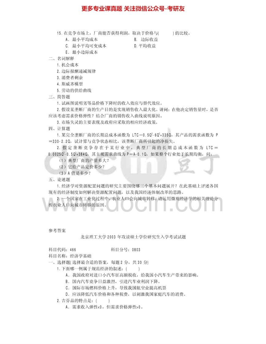 北京理工大学873经济学基础2003-2008其中2003、2005-2006有答案考研真题汇编.Image.Marked猴哥6个月前发布关注私信11.53MB68页06223北京理工大学873经济学基础2003-2008其中2003、2005-2006有答案考研真题汇编.Image.Marked此内容为免费资源,请登录后查看¥0 登录查看免费资源 第1页 / 共68页 第2页 / 共68页 第3页 / 共68页 第4页 / 共68页 第5页 / 共68页 该文档为免费文档,您可直接下载完整版进行阅读 © 版权声明文章版权归作者所有,未经允许请勿转载。THE END考研专业课 喜欢就支持一下吧点赞23赞赏 分享QQ空间微博QQ好友海报分享复制链接收藏