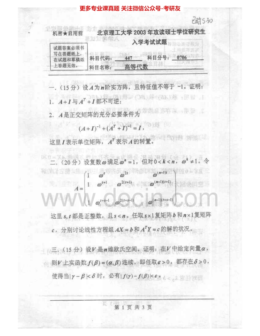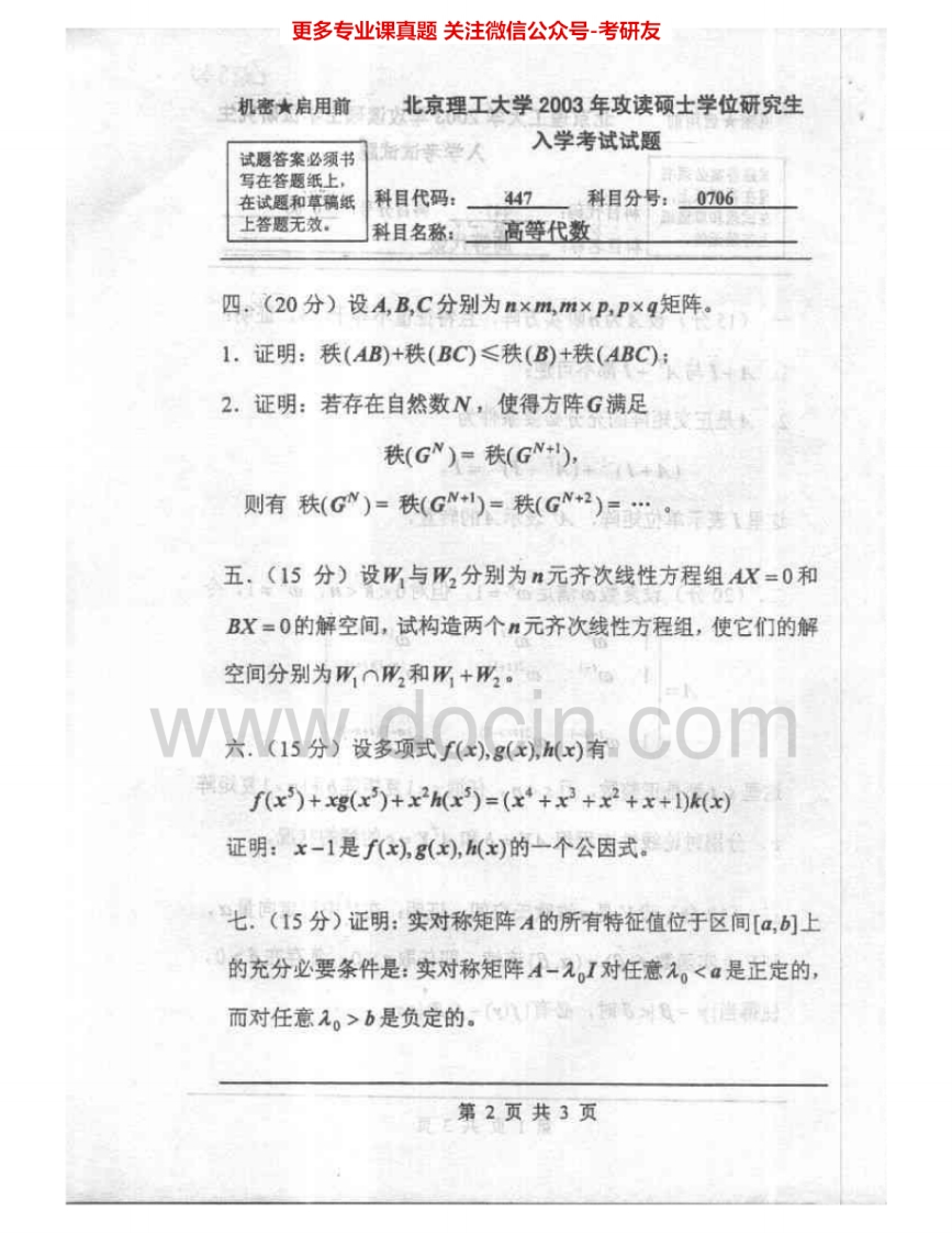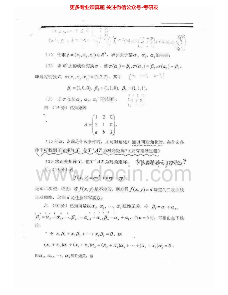 北京理工大学847高等代数2000、2003-2008考研真题汇编.Image.Marked猴哥6个月前发布关注私信6.70MB21页04840北京理工大学847高等代数2000、2003-2008考研真题汇编.Image.Marked此内容为免费资源,请登录后查看¥0 登录查看免费资源 第1页 / 共21页 第2页 / 共21页 第3页 / 共21页 第4页 / 共21页 第5页 / 共21页 该文档为免费文档,您可直接下载完整版进行阅读 © 版权声明文章版权归作者所有,未经允许请勿转载。THE END《北京理工大学》(847)高等代数考研资料考研专业课 喜欢就支持一下吧点赞40赞赏 分享QQ空间微博QQ好友海报分享复制链接收藏