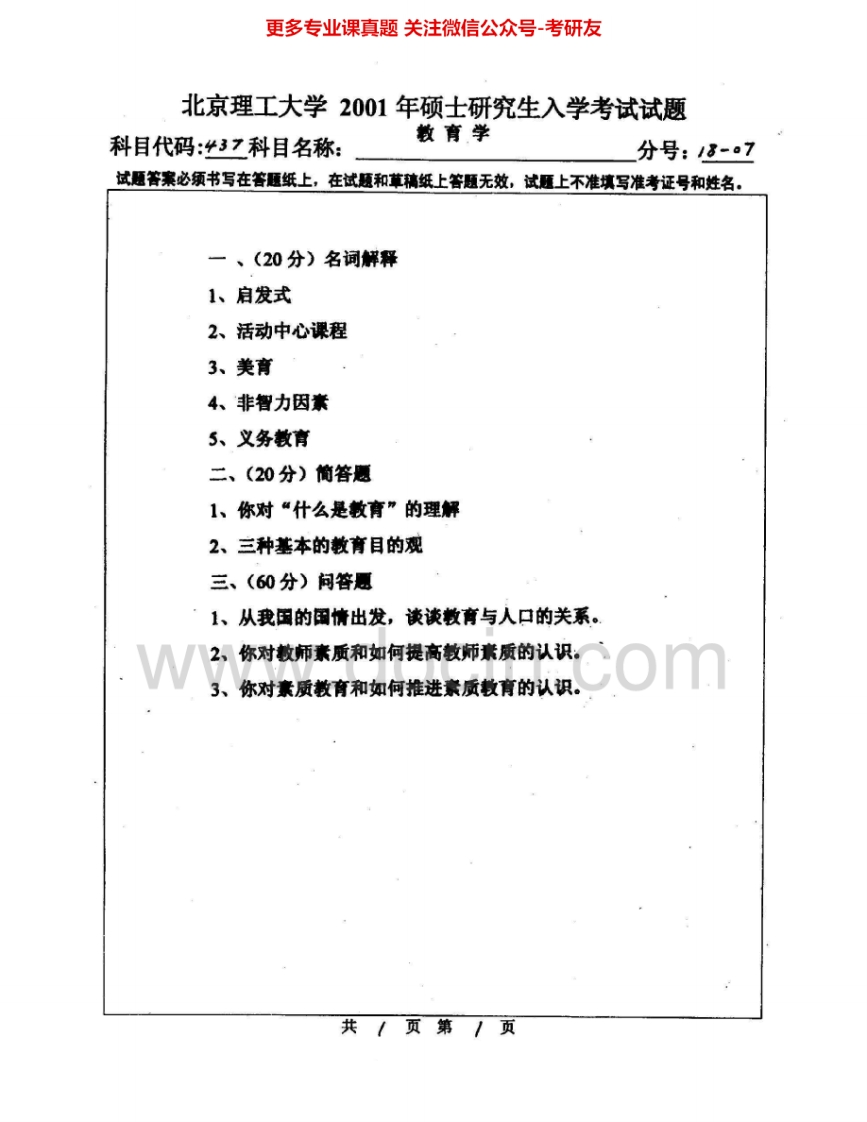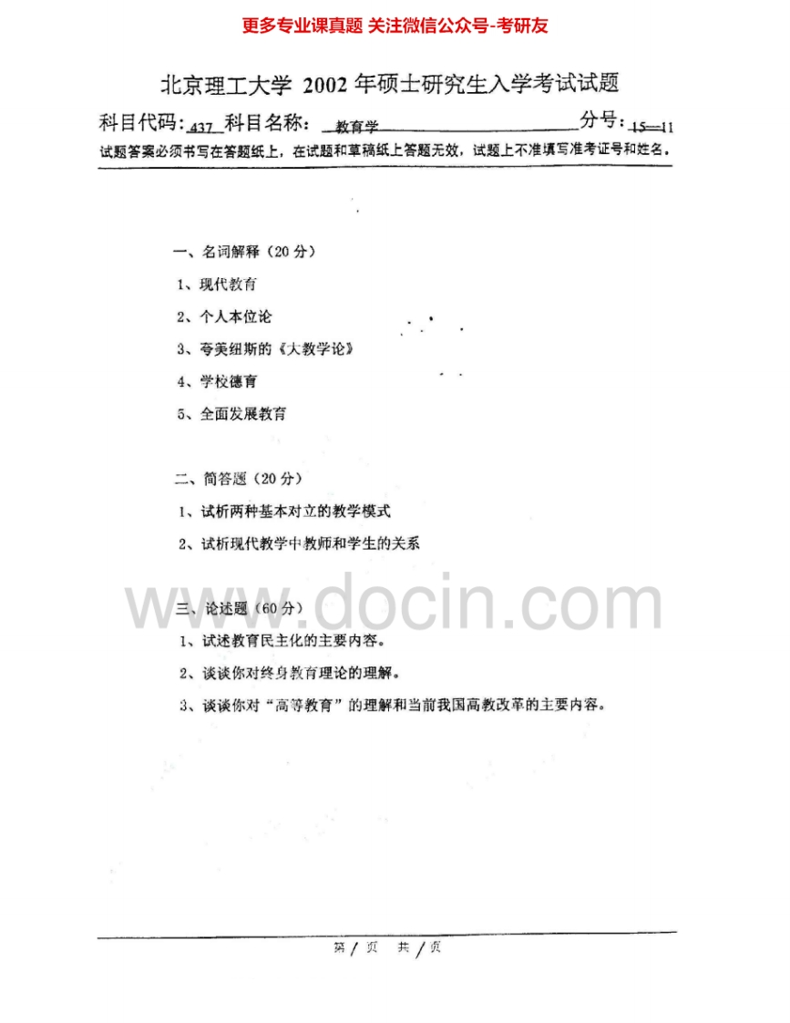北京理工大学333教育综合2000-2002考研真题汇编.Image.Marked猴哥6个月前发布关注私信0.47MB3页07862北京理工大学333教育综合2000-2002考研真题汇编.Image.Marked此内容为免费资源,请登录后查看¥0 登录查看免费资源 第1页 / 共3页 第2页 / 共3页 第3页 / 共3页 已完成全部阅读,共3页 © 版权声明文章版权归作者所有,未经允许请勿转载。THE END《北京理工大学》(333)教育综合考研资料考研专业课 喜欢就支持一下吧点赞62赞赏 分享QQ空间微博QQ好友海报分享复制链接收藏
