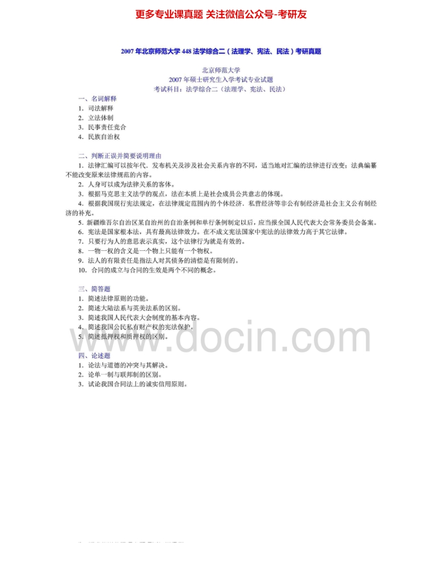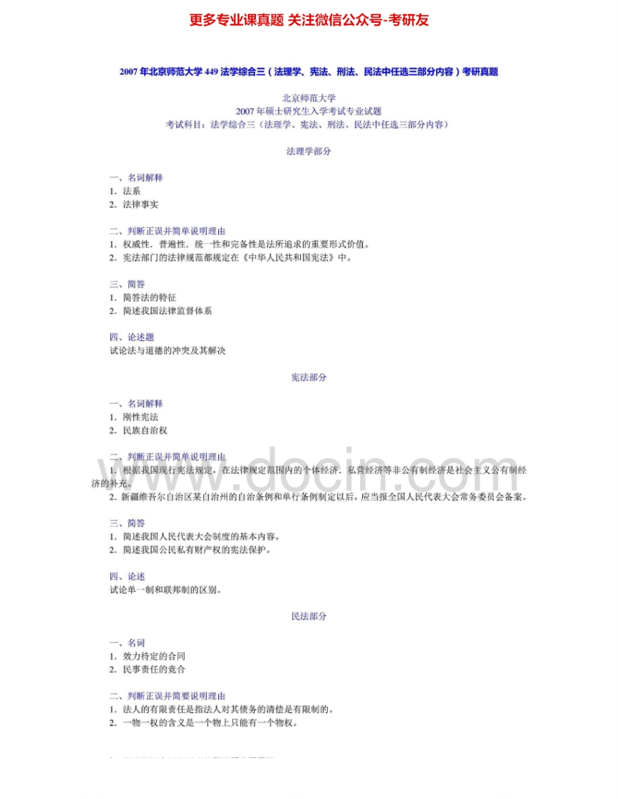 北京师范大学706法学综合2002、2006-2009(含法学综合、法学综合一、二、三)考研真题汇编.Image.Marked猴哥6个月前发布关注私信1.32MB9页06716北京师范大学706法学综合2002、2006-2009(含法学综合、法学综合一、二、三)考研真题汇编.Image.Marked此内容为免费资源,请登录后查看¥0 登录查看免费资源 第1页 / 共9页 第2页 / 共9页 第3页 / 共9页 第4页 / 共9页 第5页 / 共9页 该文档为免费文档,您可直接下载完整版进行阅读 © 版权声明文章版权归作者所有,未经允许请勿转载。THE END《北京师范大学》(706)信息管理基础考研资料考研专业课 喜欢就支持一下吧点赞16赞赏 分享QQ空间微博QQ好友海报分享复制链接收藏