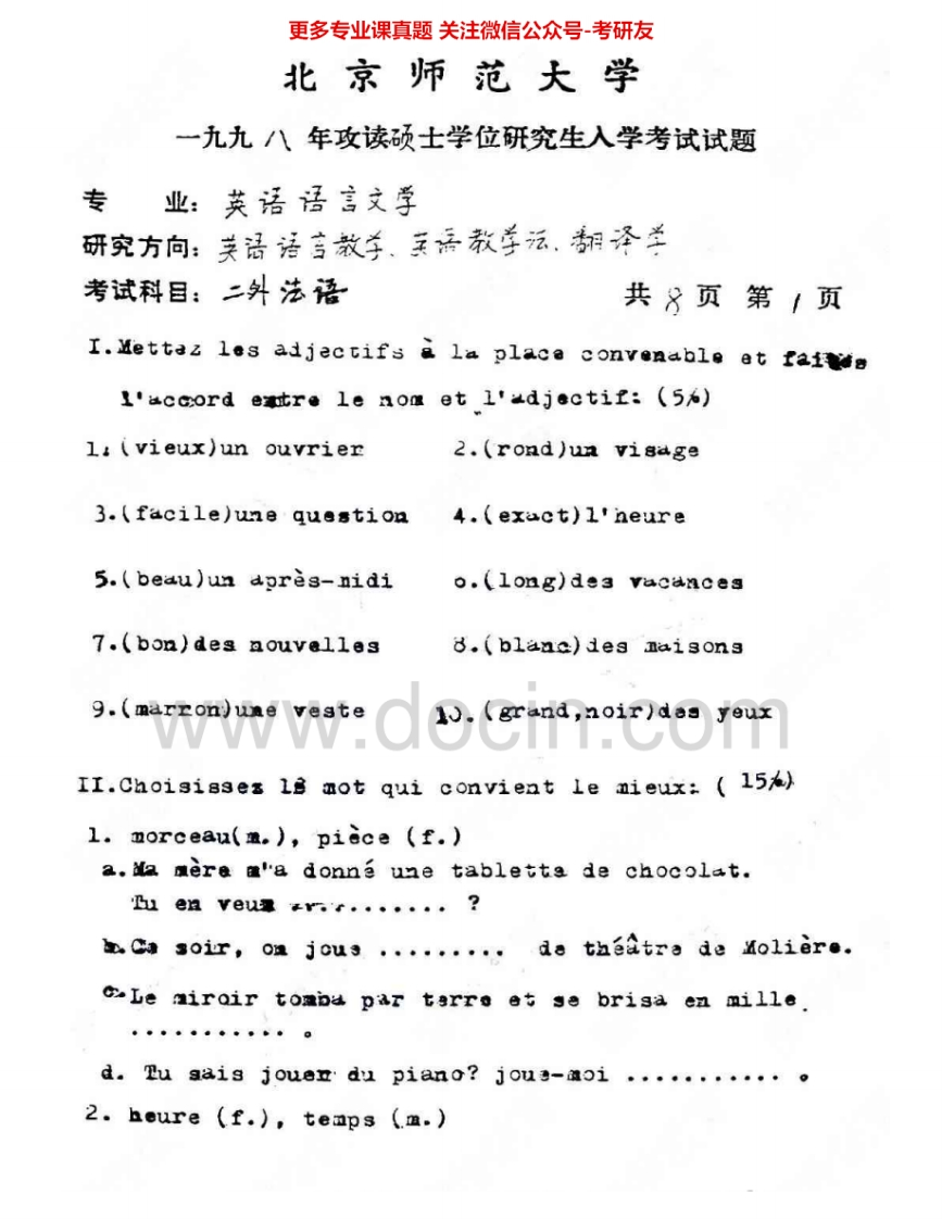 北京师范大学244法语1998-2005考研真题汇编.Image.Marked