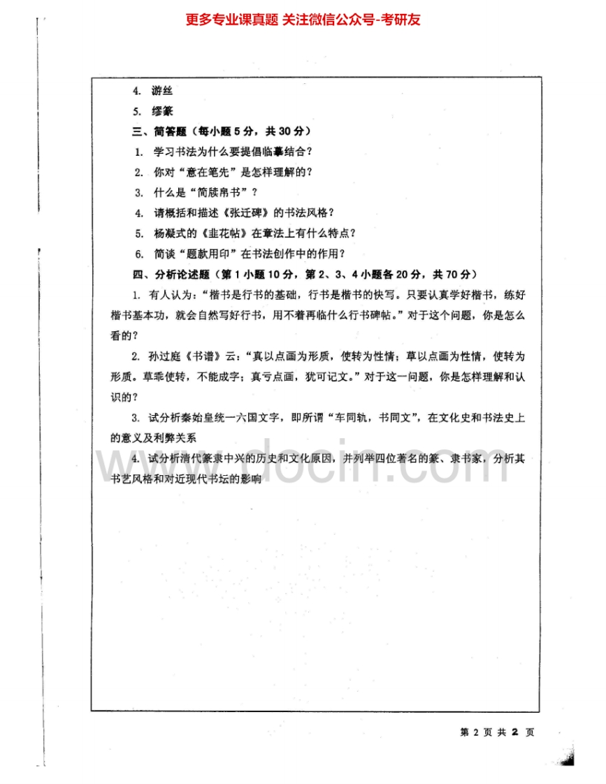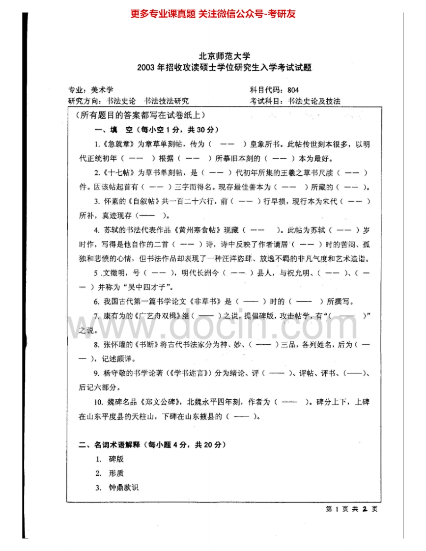 北京师范大学804书法史论2002-2003考研真题汇编.Image.Marked猴哥6个月前发布关注私信0.69MB3页08259北京师范大学804书法史论2002-2003考研真题汇编.Image.Marked此内容为免费资源,请登录后查看¥0 登录查看免费资源 第1页 / 共3页 第2页 / 共3页 第3页 / 共3页 已完成全部阅读,共3页 © 版权声明文章版权归作者所有,未经允许请勿转载。THE END《北京师范大学》(804)当代中国重大理论与现实问题考研资料考研专业课 喜欢就支持一下吧点赞59赞赏 分享QQ空间微博QQ好友海报分享复制链接收藏