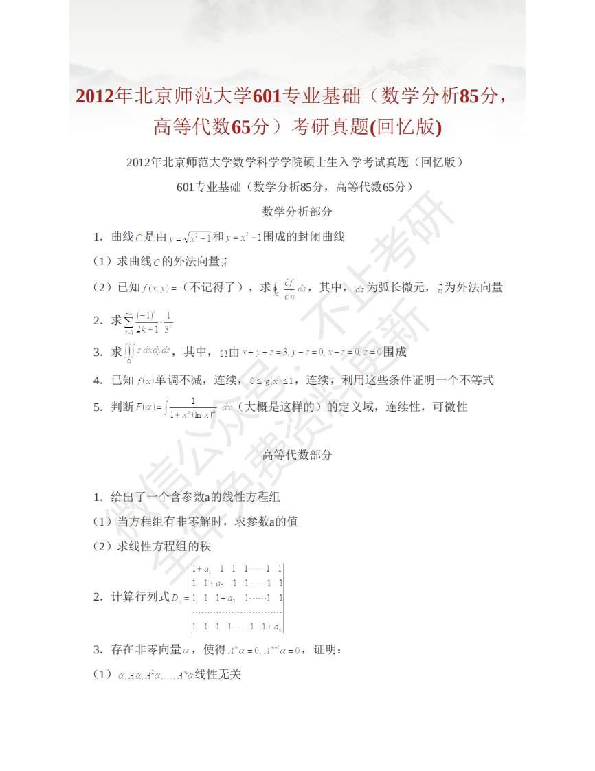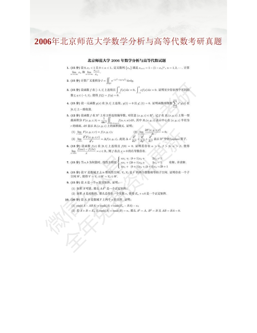 北京师范大学762数学分析历年考研真题猴哥6个月前发布关注私信1.35MB13页07558北京师范大学762数学分析历年考研真题此内容为免费资源,请登录后查看¥0 登录查看免费资源 第1页 / 共13页 第2页 / 共13页 第3页 / 共13页 第4页 / 共13页 第5页 / 共13页 该文档为免费文档,您可直接下载完整版进行阅读 © 版权声明文章版权归作者所有,未经允许请勿转载。THE END考研专业课 喜欢就支持一下吧点赞58赞赏 分享QQ空间微博QQ好友海报分享复制链接收藏