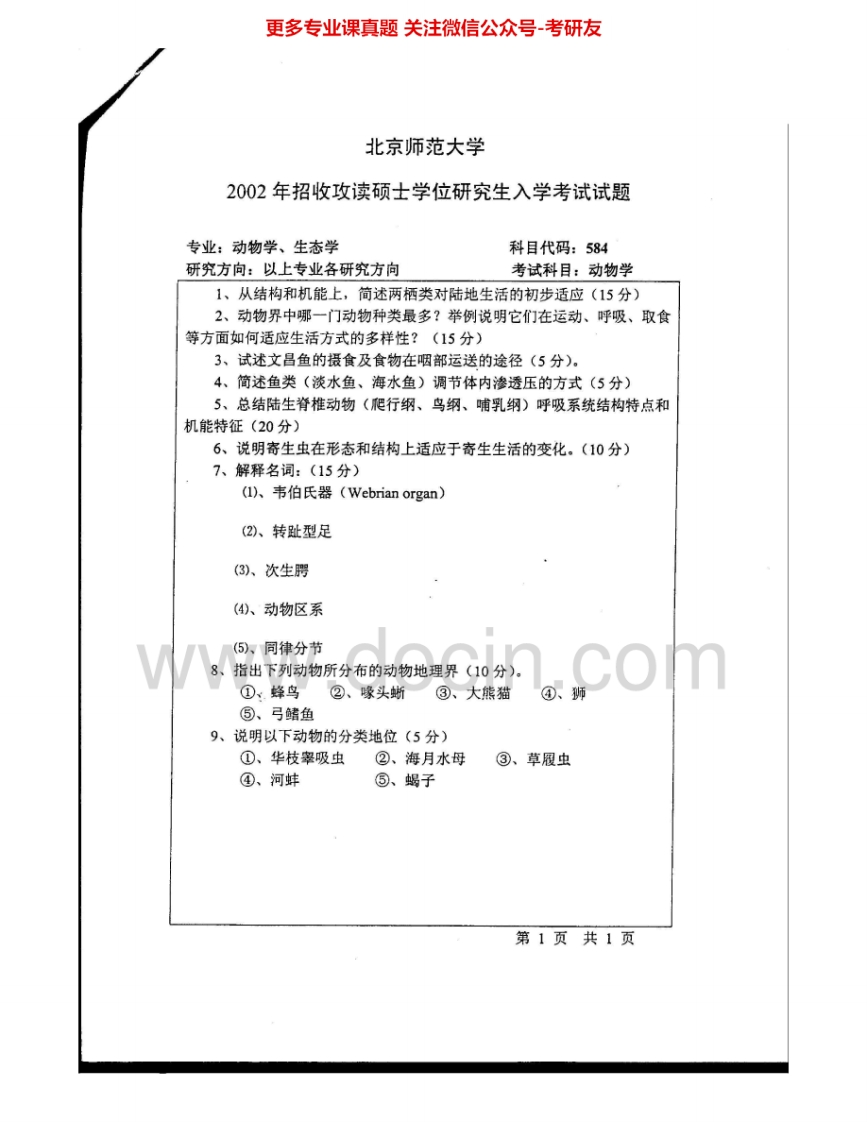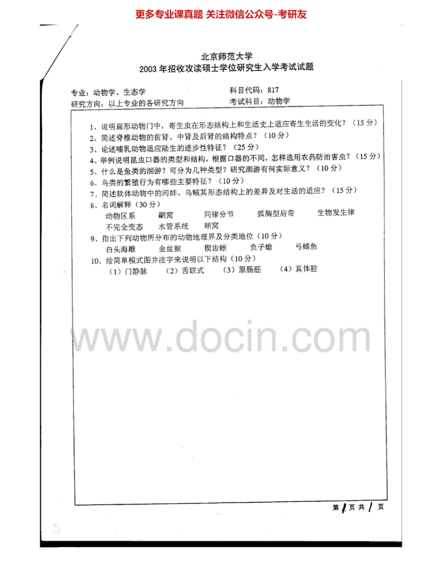 北京师范大学817动物学1999、2001-2006考研真题汇编.Image.Marked-学习资源网 - 分享优质学习资料