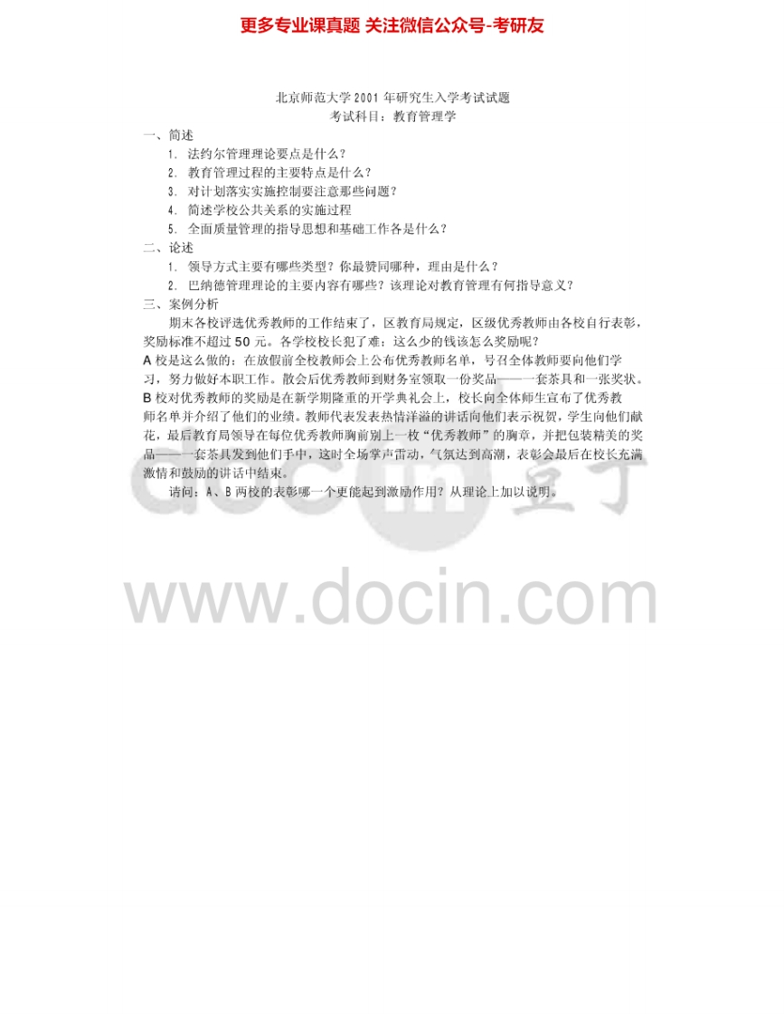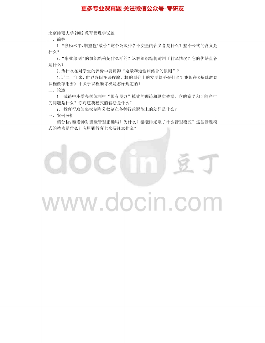 北京师范大学878教育管理学1998-1999、2001-2005考研真题汇编.Image.Marked猴哥6个月前发布关注私信0.95MB8页05822北京师范大学878教育管理学1998-1999、2001-2005考研真题汇编.Image.Marked此内容为免费资源,请登录后查看¥0 登录查看免费资源 第1页 / 共8页 第2页 / 共8页 第3页 / 共8页 第4页 / 共8页 第5页 / 共8页 该文档为免费文档,您可直接下载完整版进行阅读 © 版权声明文章版权归作者所有,未经允许请勿转载。THE END考研专业课 喜欢就支持一下吧点赞22赞赏 分享QQ空间微博QQ好友海报分享复制链接收藏