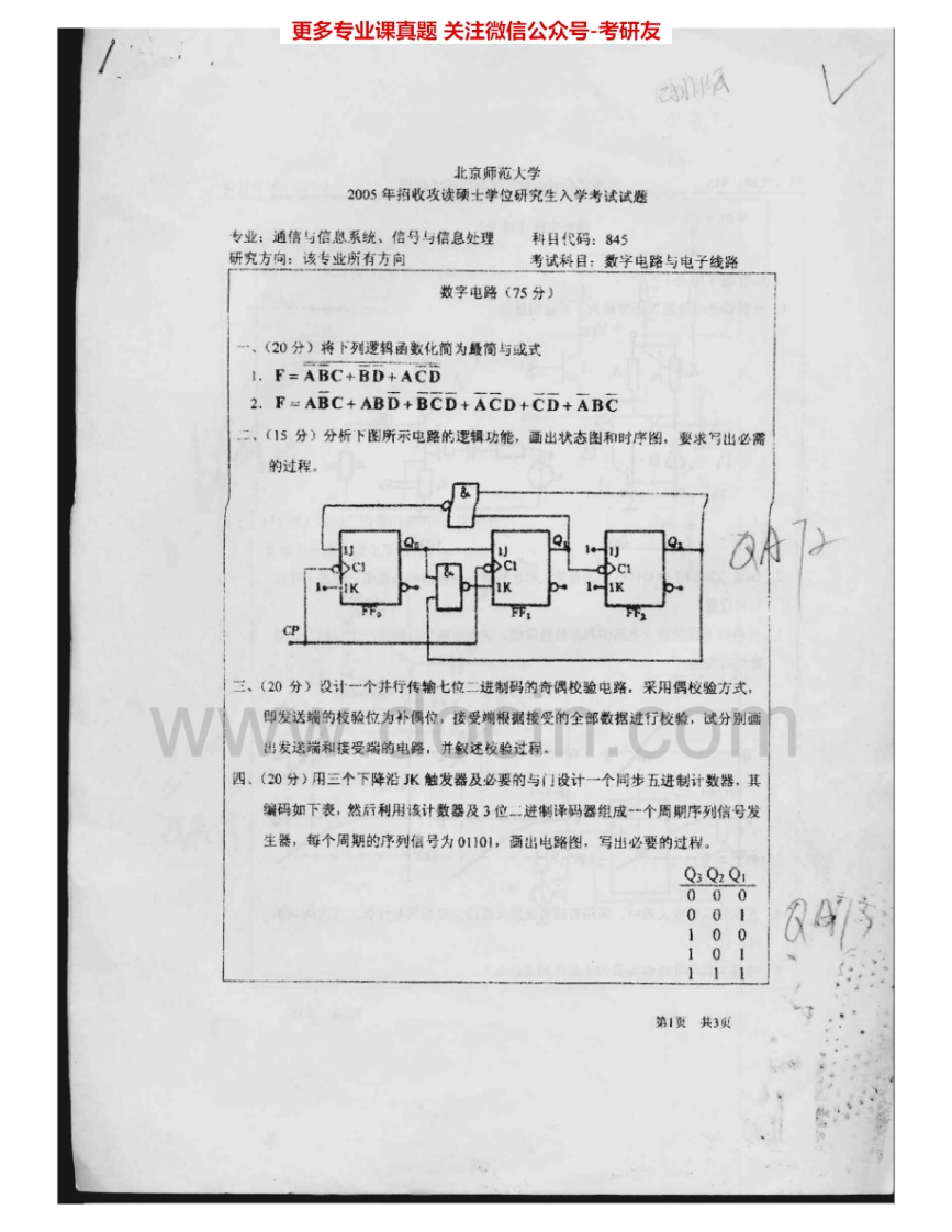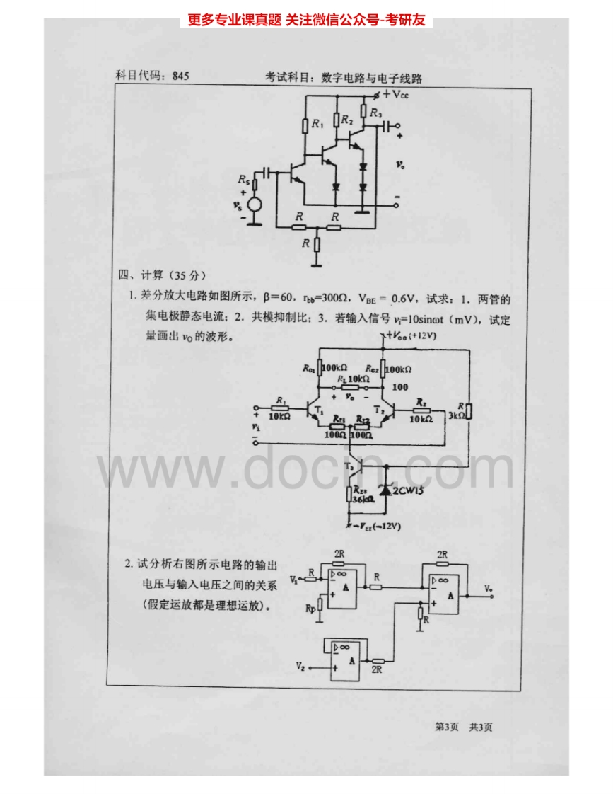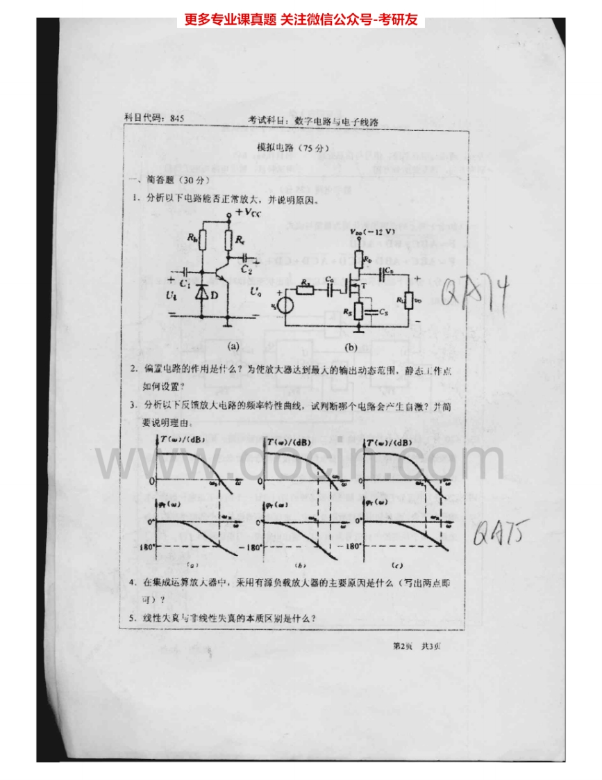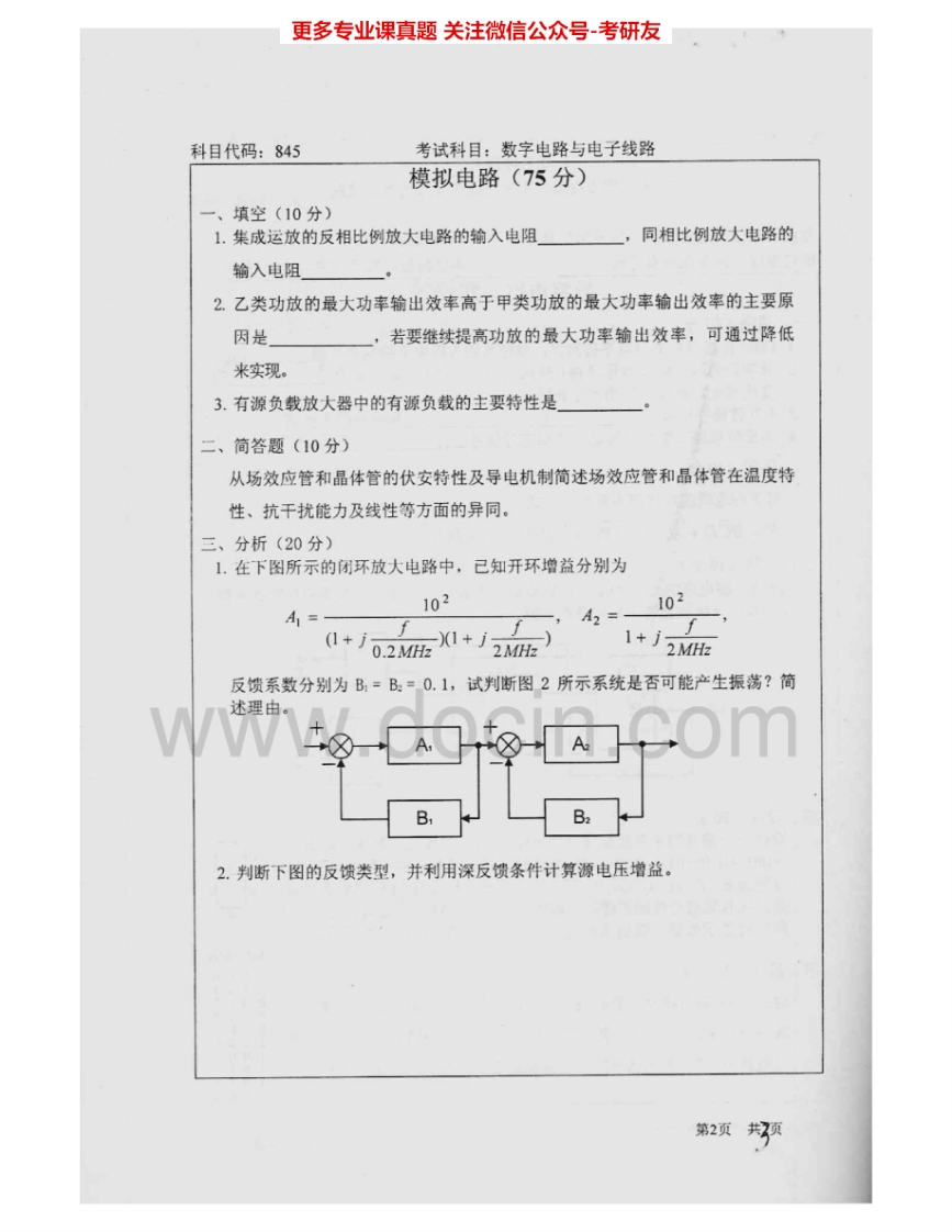 北京师范大学845数字电路与电子线路2004-2005、2007考研真题汇编.Image.Marked猴哥6个月前发布关注私信2.04MB9页07344北京师范大学845数字电路与电子线路2004-2005、2007考研真题汇编.Image.Marked此内容为免费资源,请登录后查看¥0 登录查看免费资源 第1页 / 共9页 第2页 / 共9页 第3页 / 共9页 第4页 / 共9页 第5页 / 共9页 该文档为免费文档,您可直接下载完整版进行阅读 © 版权声明文章版权归作者所有,未经允许请勿转载。THE END考研专业课 喜欢就支持一下吧点赞44赞赏 分享QQ空间微博QQ好友海报分享复制链接收藏