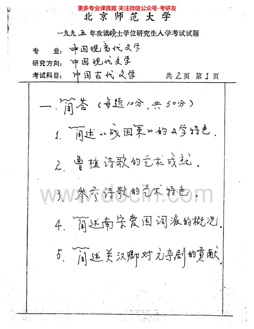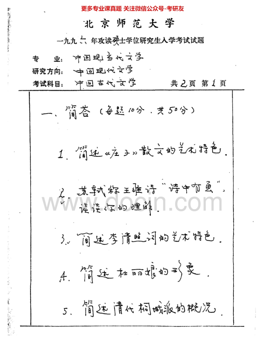 北京师范大学891中国古代文学与古代文论:中国古代文学1992、1995-2004考研真题汇编.Image.Marked猴哥6个月前发布关注私信3.02MB17页08346北京师范大学891中国古代文学与古代文论:中国古代文学1992、1995-2004考研真题汇编.Image.Marked此内容为免费资源,请登录后查看¥0 登录查看免费资源 第1页 / 共17页 第2页 / 共17页 第3页 / 共17页 第4页 / 共17页 第5页 / 共17页 该文档为免费文档,您可直接下载完整版进行阅读 © 版权声明文章版权归作者所有,未经允许请勿转载。THE END考研专业课 喜欢就支持一下吧点赞46赞赏 分享QQ空间微博QQ好友海报分享复制链接收藏
