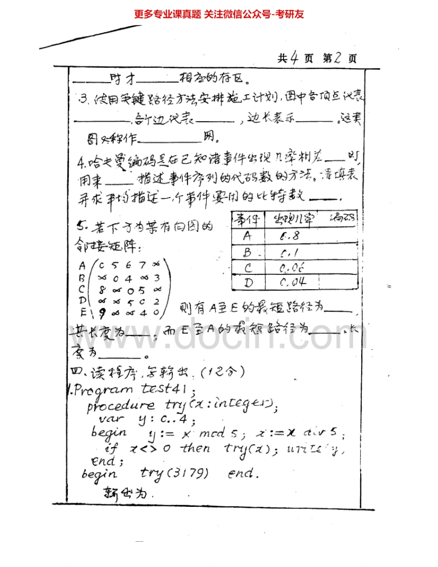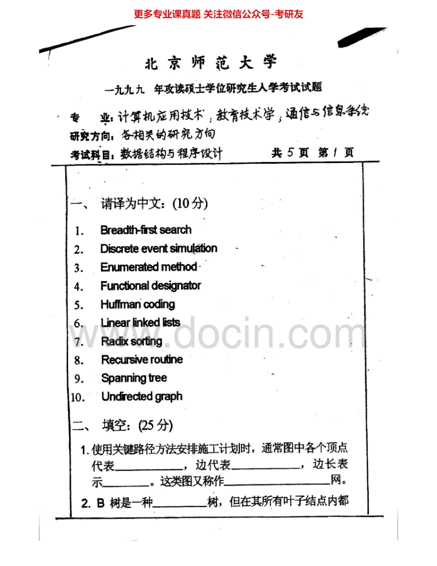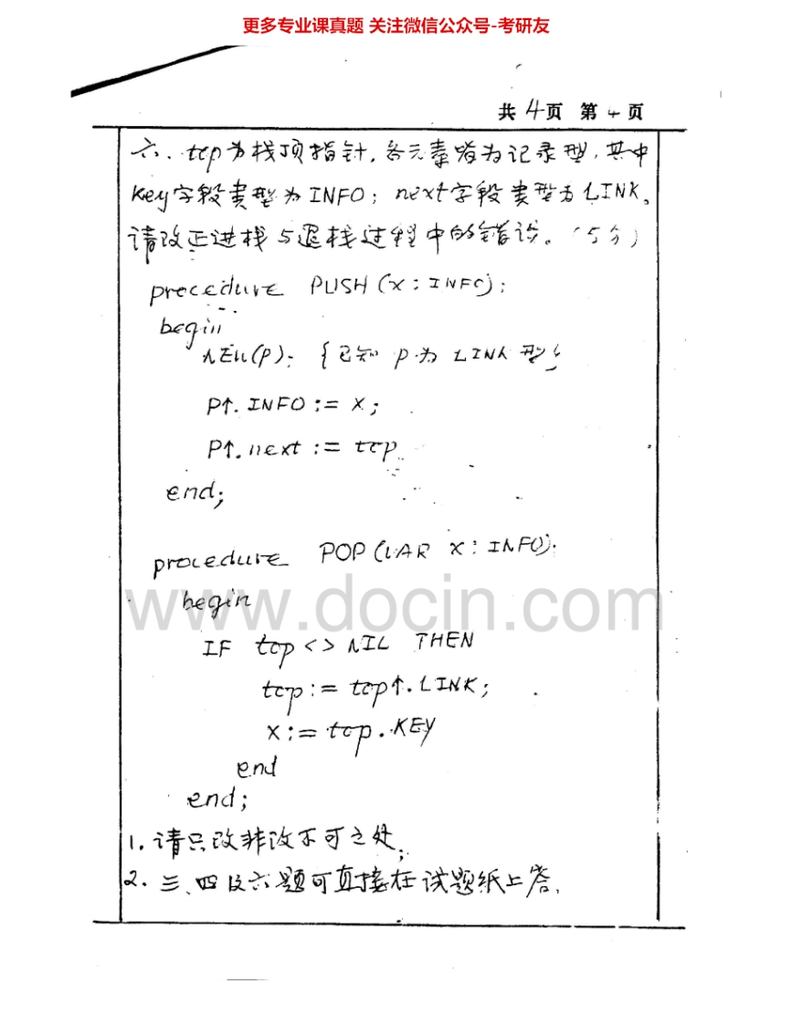北京师范大学847数据结构与程序设计1998-1999、2001、2004-2005、2007-2008考研真题汇编.Image.Marked猴哥6个月前发布关注私信7.01MB33页06812北京师范大学847数据结构与程序设计1998-1999、2001、2004-2005、2007-2008考研真题汇编.Image.Marked此内容为免费资源,请登录后查看¥0 登录查看免费资源 第1页 / 共33页 第2页 / 共33页 第3页 / 共33页 第4页 / 共33页 第5页 / 共33页 该文档为免费文档,您可直接下载完整版进行阅读 © 版权声明文章版权归作者所有,未经允许请勿转载。THE END考研专业课 喜欢就支持一下吧点赞12赞赏 分享QQ空间微博QQ好友海报分享复制链接收藏