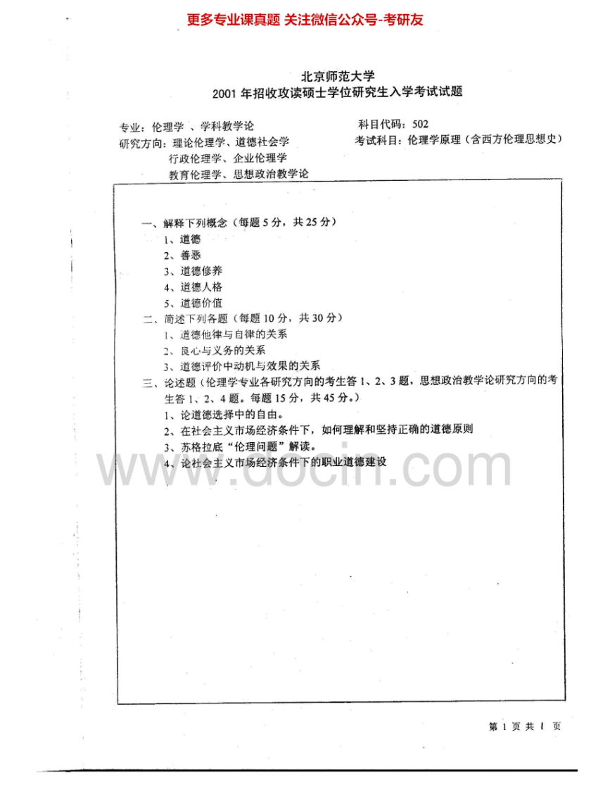 北京师范大学904伦理学原理1999、2001、2003-2006、2008考研真题汇编.Image.Marked猴哥6个月前发布关注私信1.08MB7页08259北京师范大学904伦理学原理1999、2001、2003-2006、2008考研真题汇编.Image.Marked此内容为免费资源,请登录后查看¥0 登录查看免费资源 第1页 / 共7页 第2页 / 共7页 第3页 / 共7页 第4页 / 共7页 第5页 / 共7页 该文档为免费文档,您可直接下载完整版进行阅读 © 版权声明文章版权归作者所有,未经允许请勿转载。THE END考研专业课 喜欢就支持一下吧点赞59赞赏 分享QQ空间微博QQ好友海报分享复制链接收藏