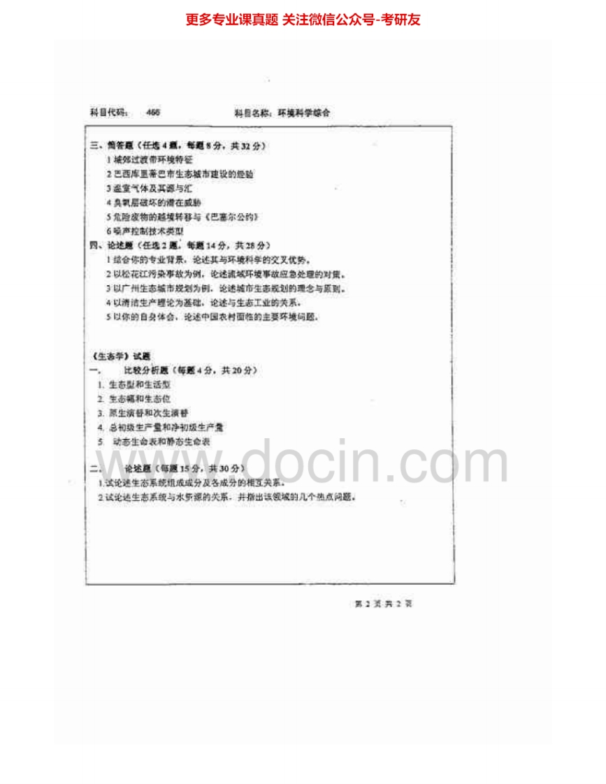 北京师范大学966环境科学综合(环境科学概论生态学)2005-2008考研真题汇编.Image.Marked猴哥6个月前发布关注私信1.79MB9页05726北京师范大学966环境科学综合(环境科学概论生态学)2005-2008考研真题汇编.Image.Marked此内容为免费资源,请登录后查看¥0 登录查看免费资源 第1页 / 共9页 第2页 / 共9页 第3页 / 共9页 第4页 / 共9页 第5页 / 共9页 该文档为免费文档,您可直接下载完整版进行阅读 © 版权声明文章版权归作者所有,未经允许请勿转载。THE END考研专业课 喜欢就支持一下吧点赞26赞赏 分享QQ空间微博QQ好友海报分享复制链接收藏