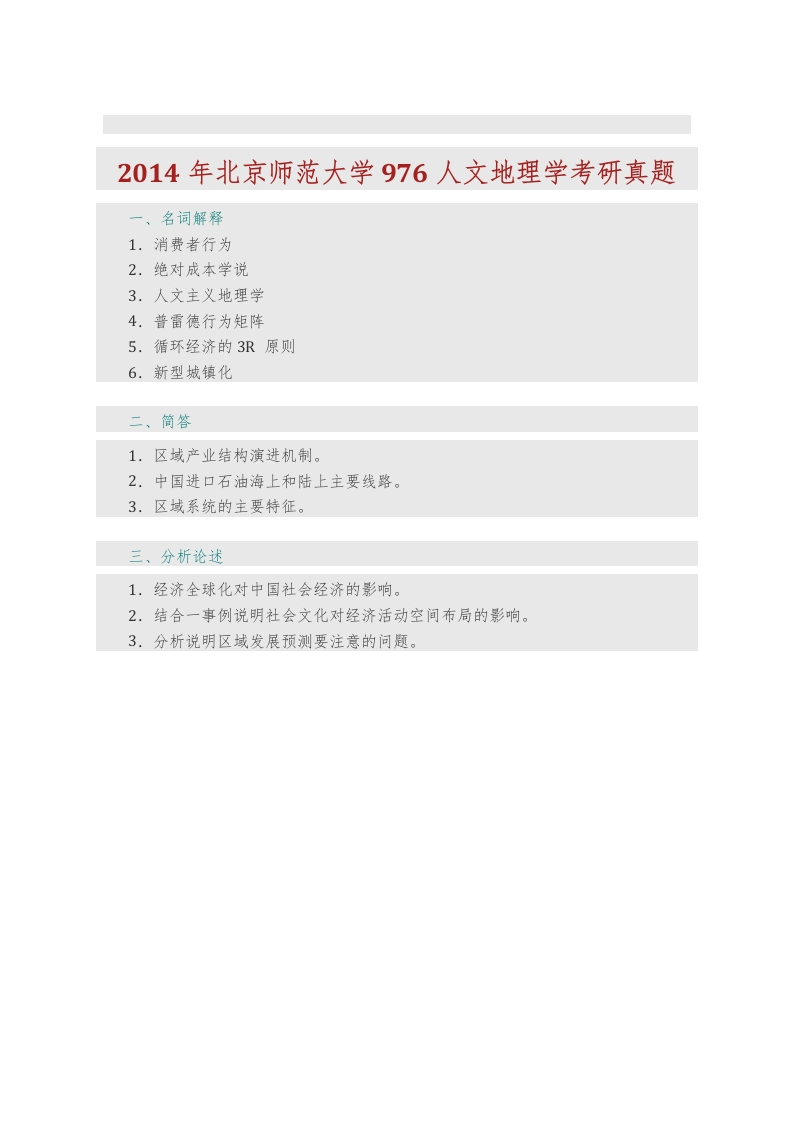 北京师范大学地理学与遥感科学学院976人文地理学历年考研真题汇编(含部分答案)猴哥6个月前发布关注私信0.17MB20页06329北京师范大学地理学与遥感科学学院976人文地理学历年考研真题汇编(含部分答案)此内容为免费资源,请登录后查看¥0 登录查看免费资源 第1页 / 共20页 第2页 / 共20页 第3页 / 共20页 第4页 / 共20页 第5页 / 共20页 该文档为免费文档,您可直接下载完整版进行阅读 © 版权声明文章版权归作者所有,未经允许请勿转载。THE END考研专业课 喜欢就支持一下吧点赞29赞赏 分享QQ空间微博QQ好友海报分享复制链接收藏