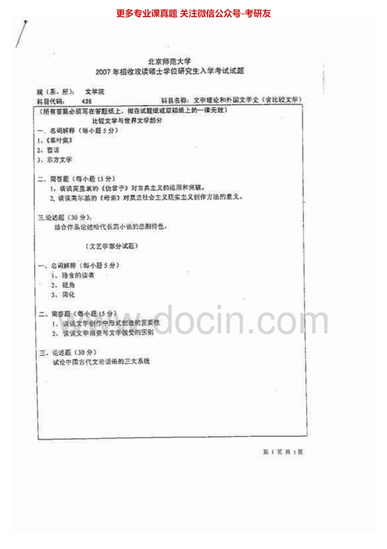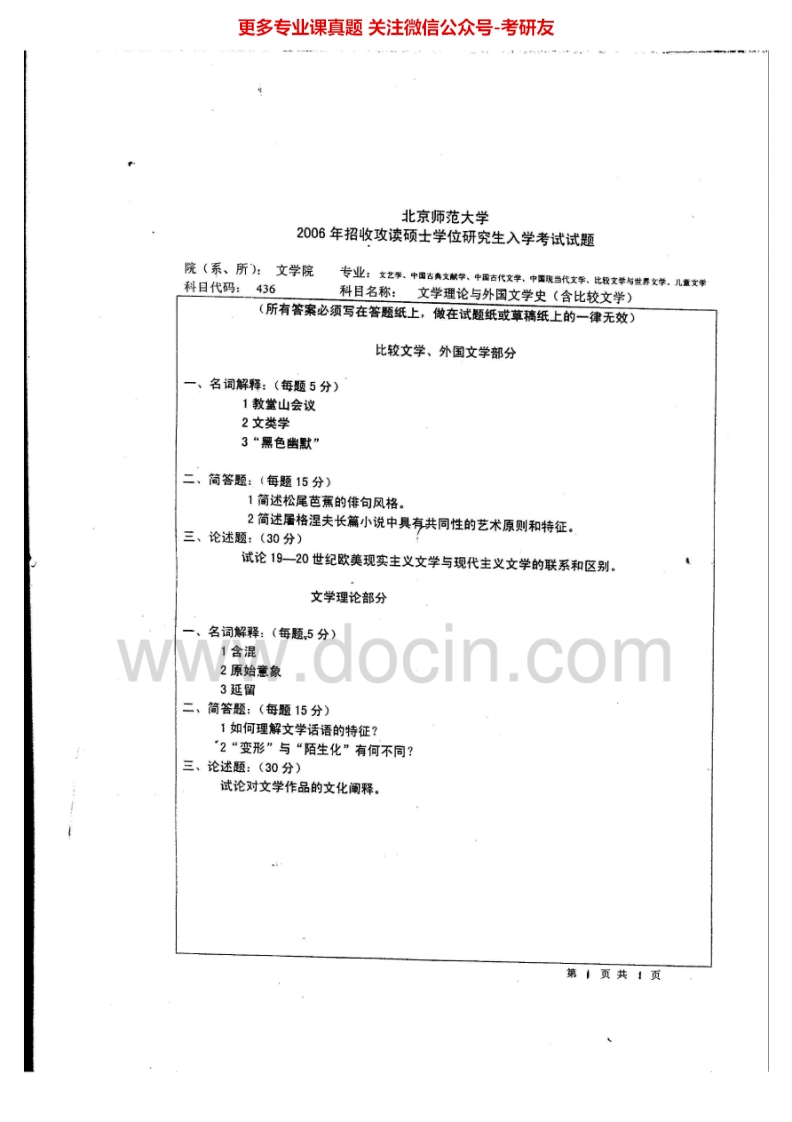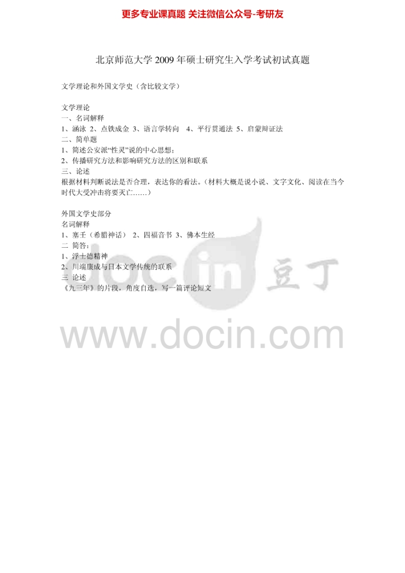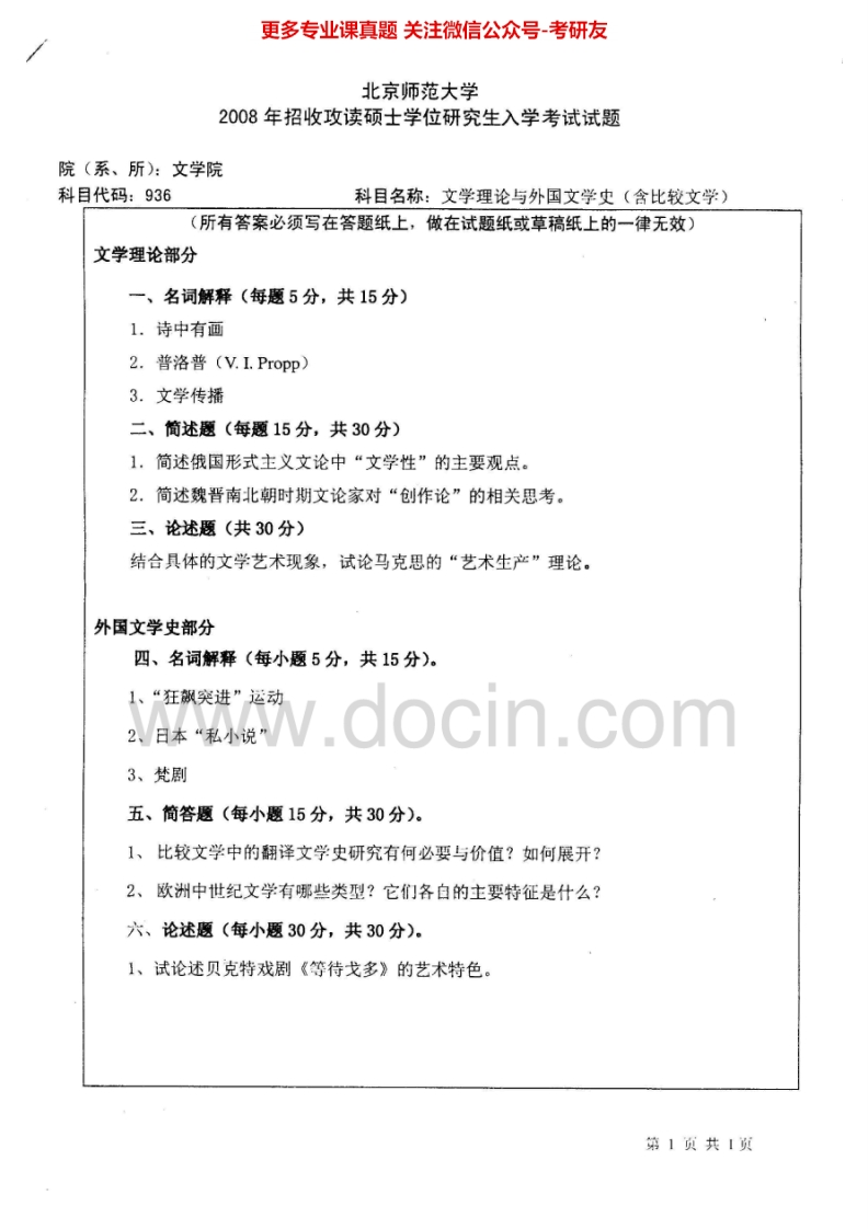 北京师范大学文学理论与外国文学史(含比较文学)历年真题2005-2010、2012考研真题汇编.Image.Marked猴哥6个月前发布关注私信1.08MB7页06128北京师范大学文学理论与外国文学史(含比较文学)历年真题2005-2010、2012考研真题汇编.Image.Marked此内容为免费资源,请登录后查看¥0 登录查看免费资源 第1页 / 共7页 第2页 / 共7页 第3页 / 共7页 第4页 / 共7页 第5页 / 共7页 该文档为免费文档,您可直接下载完整版进行阅读 © 版权声明文章版权归作者所有,未经允许请勿转载。THE END考研专业课 喜欢就支持一下吧点赞28赞赏 分享QQ空间微博QQ好友海报分享复制链接收藏