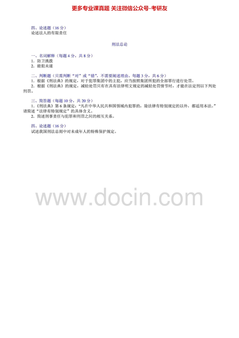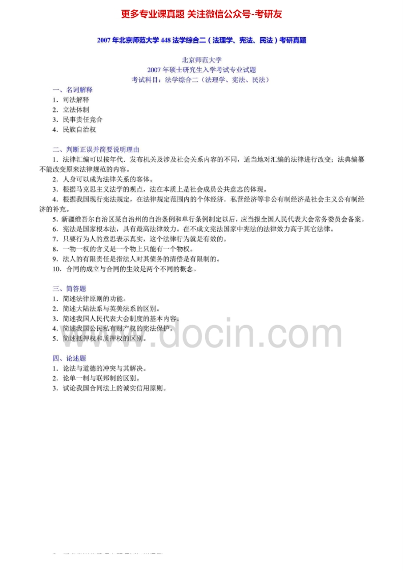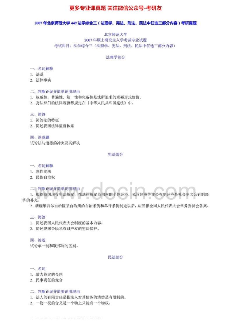 北京师范大学法学综合(含707法学综合一、708法学综合二等)20022006-2009年考研真题汇编.Image.Marked猴哥6个月前发布关注私信1.59MB9页04241北京师范大学法学综合(含707法学综合一、708法学综合二等)20022006-2009年考研真题汇编.Image.Marked此内容为免费资源,请登录后查看¥0 登录查看免费资源 第1页 / 共9页 第2页 / 共9页 第3页 / 共9页 第4页 / 共9页 第5页 / 共9页 该文档为免费文档,您可直接下载完整版进行阅读 © 版权声明文章版权归作者所有,未经允许请勿转载。THE END《北京师范大学》(708)中国语言文学综合考研资料考研专业课 喜欢就支持一下吧点赞41赞赏 分享QQ空间微博QQ好友海报分享复制链接收藏