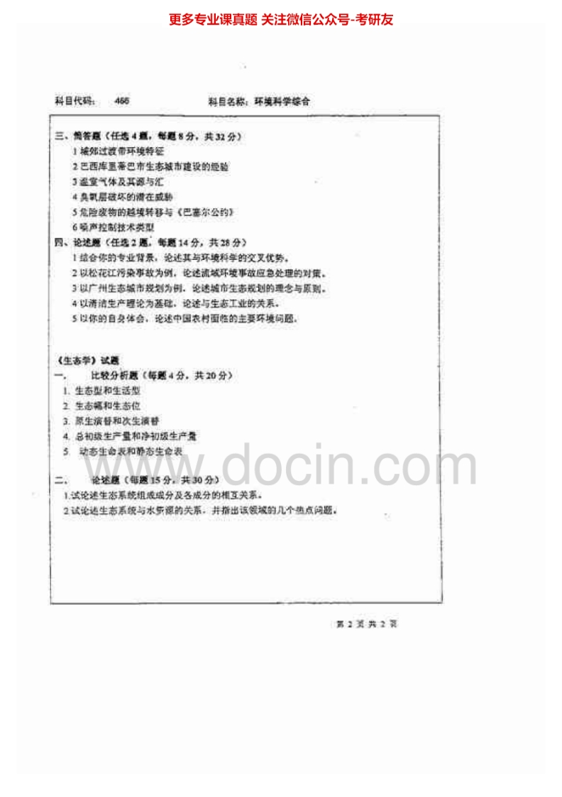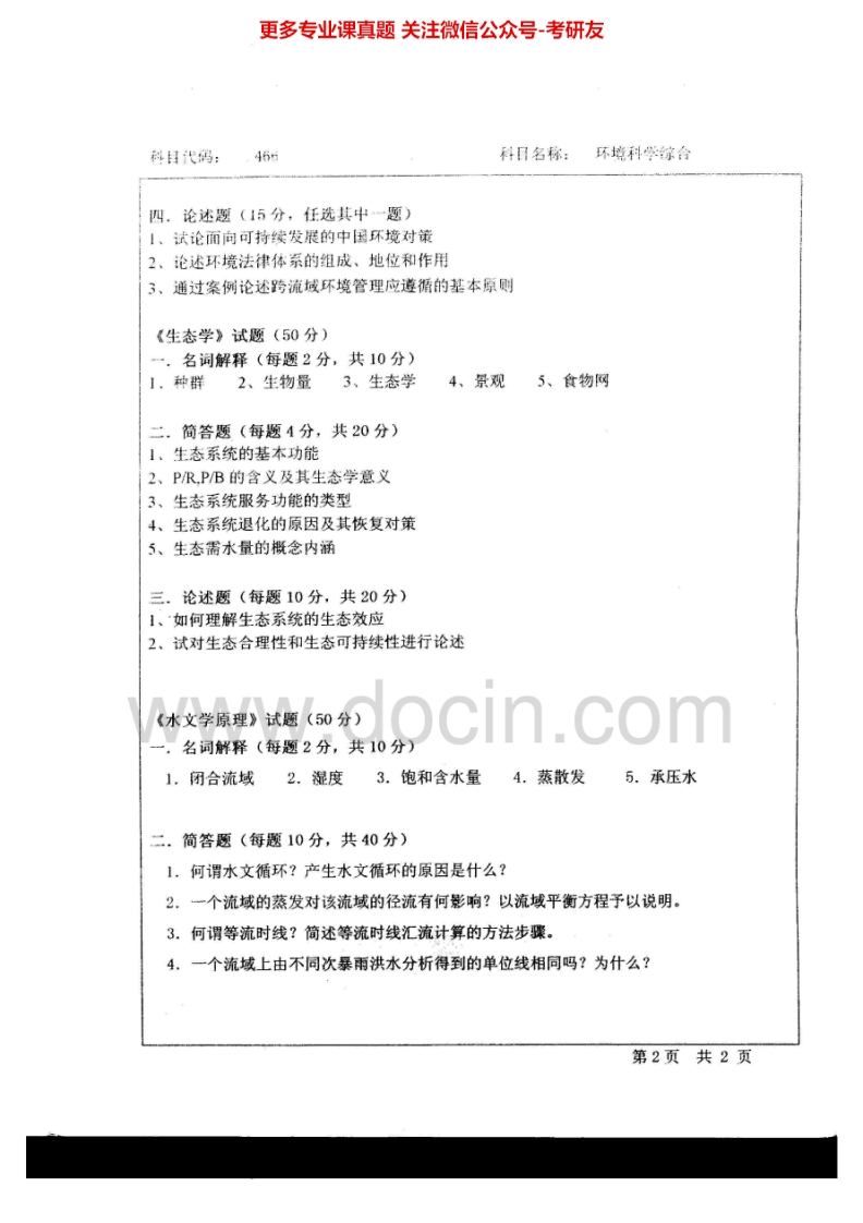 北京师范大学环境科学综合(环境科学概论100分生态学50分)2005-2008考研真题汇编.Image.Marked猴哥6个月前发布关注私信2.09MB9页05157北京师范大学环境科学综合(环境科学概论100分生态学50分)2005-2008考研真题汇编.Image.Marked此内容为免费资源,请登录后查看¥0 登录查看免费资源 第1页 / 共9页 第2页 / 共9页 第3页 / 共9页 第4页 / 共9页 第5页 / 共9页 该文档为免费文档,您可直接下载完整版进行阅读 © 版权声明文章版权归作者所有,未经允许请勿转载。THE END考研专业课 喜欢就支持一下吧点赞57赞赏 分享QQ空间微博QQ好友海报分享复制链接收藏