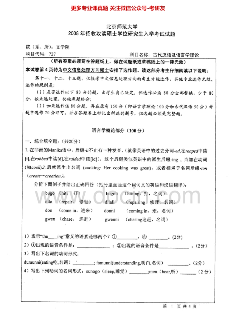 北京师范大学古代汉语及语言学理论20072012考研真题汇编.Image.Marked猴哥6个月前发布关注私信2.93MB11页07910北京师范大学古代汉语及语言学理论20072012考研真题汇编.Image.Marked此内容为免费资源,请登录后查看¥0 登录查看免费资源 第1页 / 共11页 第2页 / 共11页 第3页 / 共11页 第4页 / 共11页 第5页 / 共11页 该文档为免费文档,您可直接下载完整版进行阅读 © 版权声明文章版权归作者所有,未经允许请勿转载。THE END《北京师范大学》(720)艺术理论考研资料考研专业课 喜欢就支持一下吧点赞10赞赏 分享QQ空间微博QQ好友海报分享复制链接收藏