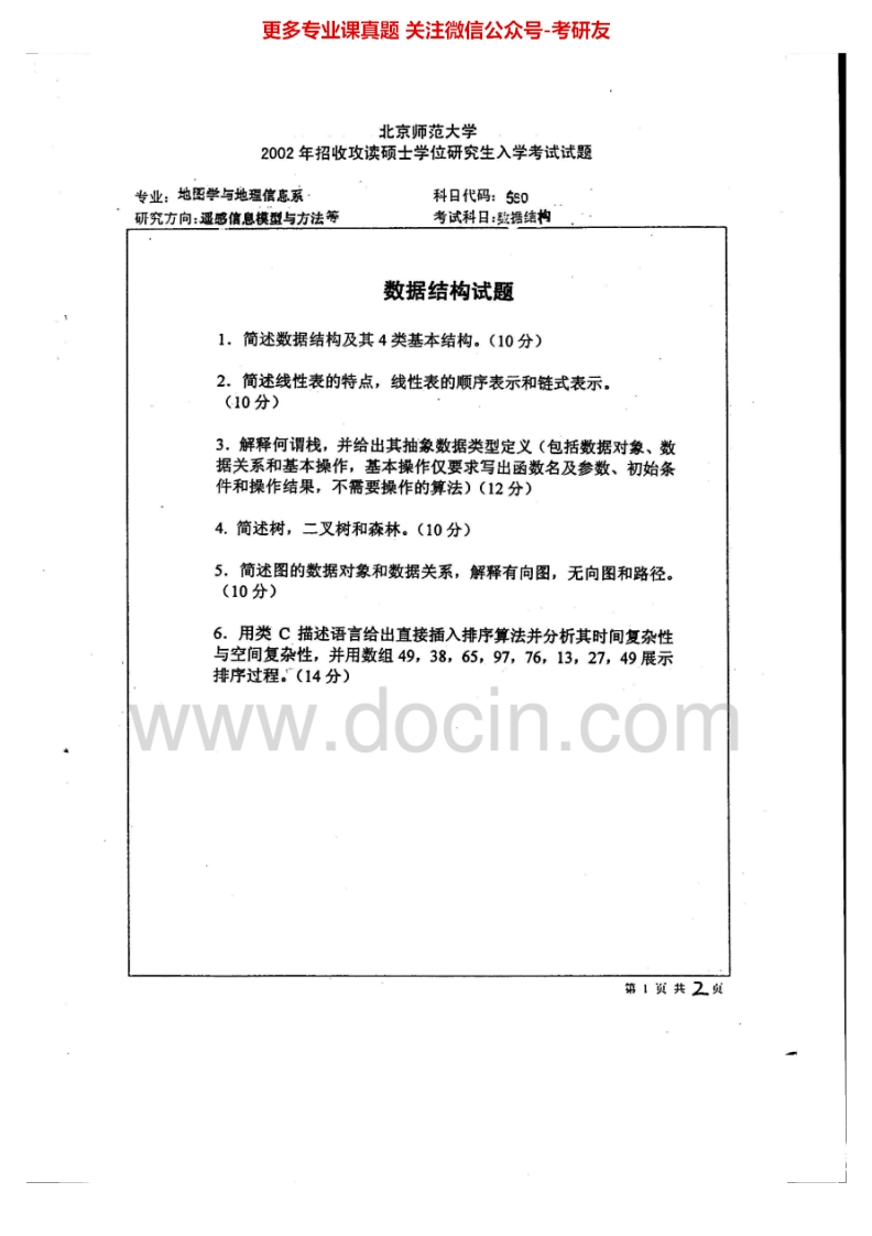 北京师范大学数据结构历年真题1999-2009考研真题汇编.Image.Marked-学习资源网 - 分享优质学习资料