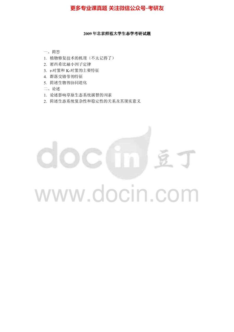 北京师范大学普通生态学1999-2006、2009-2010考研真题汇编.Image.Marked猴哥6个月前发布关注私信6.50MB24页04751北京师范大学普通生态学1999-2006、2009-2010考研真题汇编.Image.Marked此内容为免费资源,请登录后查看¥0 登录查看免费资源 第1页 / 共24页 第2页 / 共24页 第3页 / 共24页 第4页 / 共24页 第5页 / 共24页 该文档为免费文档,您可直接下载完整版进行阅读 © 版权声明文章版权归作者所有,未经允许请勿转载。THE END考研专业课 喜欢就支持一下吧点赞51赞赏 分享QQ空间微博QQ好友海报分享复制链接收藏