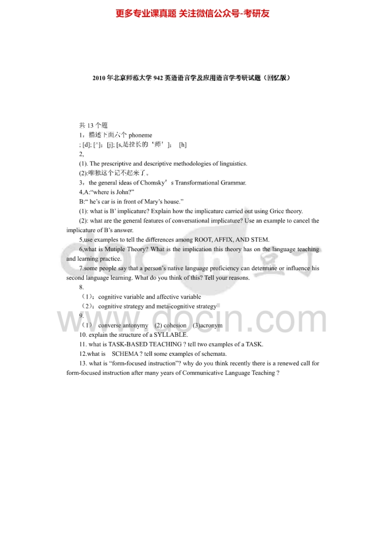 北京师范大学英语语言学及应用语言学历年真题(2008、2010)考研真题汇编.Image.Marked猴哥6个月前发布关注私信0.42MB3页08061北京师范大学英语语言学及应用语言学历年真题(2008、2010)考研真题汇编.Image.Marked此内容为免费资源,请登录后查看¥0 登录查看免费资源 第1页 / 共3页 第2页 / 共3页 第3页 / 共3页 已完成全部阅读,共3页 © 版权声明文章版权归作者所有,未经允许请勿转载。THE END考研专业课 喜欢就支持一下吧点赞61赞赏 分享QQ空间微博QQ好友海报分享复制链接收藏