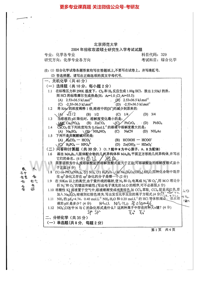 北京师范大学综合化学一(化学原理、物理化学、结构化学)综合化学二(无机化学、分析化学、有机化学)历年真题考研真题汇编.Image.Marked猴哥6个月前发布关注私信27.76MB105页04329北京师范大学综合化学一(化学原理、物理化学、结构化学)综合化学二(无机化学、分析化学、有机化学)历年真题考研真题汇编.Image.Marked此内容为免费资源,请登录后查看¥0 登录查看免费资源 第1页 / 共105页 第2页 / 共105页 第3页 / 共105页 第4页 / 共105页 第5页 / 共105页 该文档为免费文档,您可直接下载完整版进行阅读 © 版权声明文章版权归作者所有,未经允许请勿转载。THE END考研专业课 喜欢就支持一下吧点赞29赞赏 分享QQ空间微博QQ好友海报分享复制链接收藏