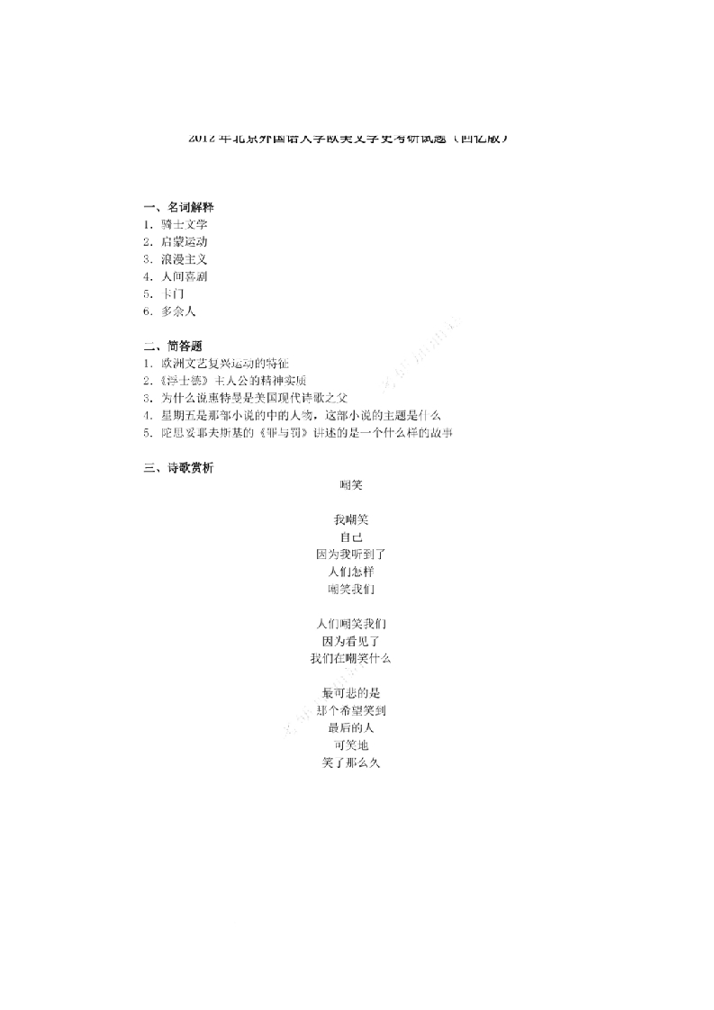 北京外国语大学935欧美文学史考研真题猴哥6个月前发布关注私信0.26MB2页06261北京外国语大学935欧美文学史考研真题此内容为免费资源,请登录后查看¥0 登录查看免费资源 第1页 / 共2页 第2页 / 共2页 已完成全部阅读,共2页 © 版权声明文章版权归作者所有,未经允许请勿转载。THE END考研专业课 喜欢就支持一下吧点赞61赞赏 分享QQ空间微博QQ好友海报分享复制链接收藏