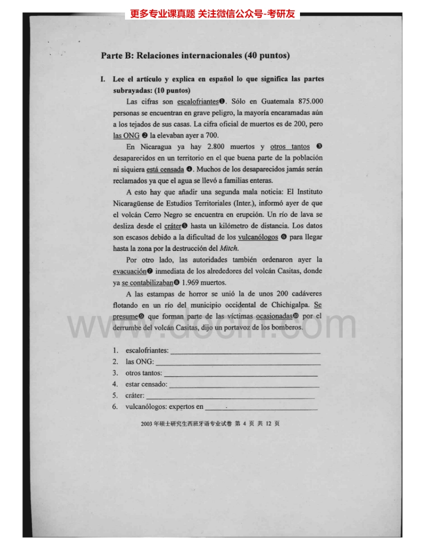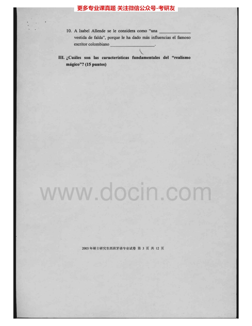 北京外国语大学871西班牙语专业2003-2004考研真题汇编.Image.Marked猴哥6个月前发布关注私信5.05MB26页04315北京外国语大学871西班牙语专业2003-2004考研真题汇编.Image.Marked此内容为免费资源,请登录后查看¥0 登录查看免费资源 第1页 / 共26页 第2页 / 共26页 第3页 / 共26页 第4页 / 共26页 第5页 / 共26页 该文档为免费文档,您可直接下载完整版进行阅读 © 版权声明文章版权归作者所有,未经允许请勿转载。THE END考研专业课 喜欢就支持一下吧点赞15赞赏 分享QQ空间微博QQ好友海报分享复制链接收藏
