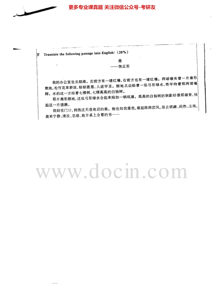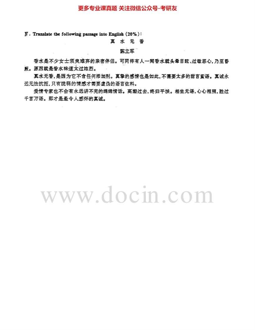 北京外国语大学211翻译硕士英语1997-2003其中2000-2001有答案考研真题汇编.Image.Marked猴哥6个月前发布关注私信4.65MB22页04940北京外国语大学211翻译硕士英语1997-2003其中2000-2001有答案考研真题汇编.Image.Marked此内容为免费资源,请登录后查看¥0 登录查看免费资源 第1页 / 共22页 第2页 / 共22页 第3页 / 共22页 第4页 / 共22页 第5页 / 共22页 该文档为免费文档,您可直接下载完整版进行阅读 © 版权声明文章版权归作者所有,未经允许请勿转载。THE END考研专业课 喜欢就支持一下吧点赞40赞赏 分享QQ空间微博QQ好友海报分享复制链接收藏