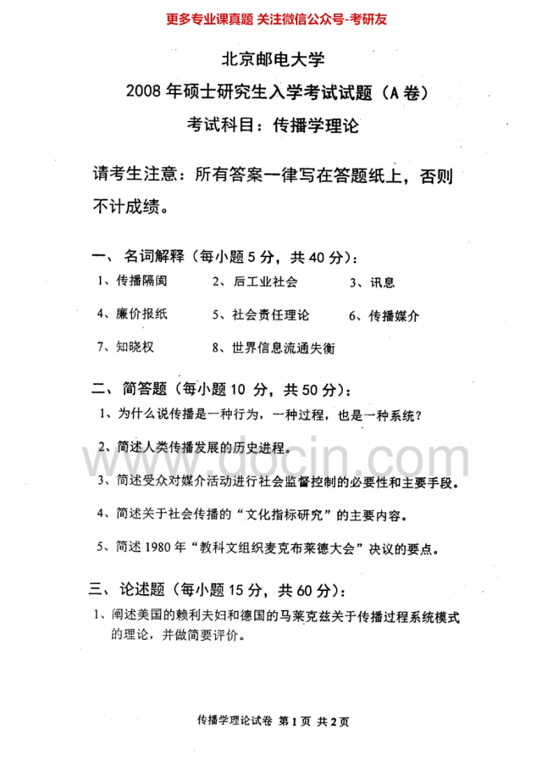 北京邮电大学传播学理论2007-2014考研真题汇编.Image.Marked猴哥6个月前发布关注私信4.27MB11页05615北京邮电大学传播学理论2007-2014考研真题汇编.Image.Marked此内容为免费资源,请登录后查看¥0 登录查看免费资源 第1页 / 共11页 第2页 / 共11页 第3页 / 共11页 第4页 / 共11页 第5页 / 共11页 该文档为免费文档,您可直接下载完整版进行阅读 © 版权声明文章版权归作者所有,未经允许请勿转载。THE END考研专业课 喜欢就支持一下吧点赞15赞赏 分享QQ空间微博QQ好友海报分享复制链接收藏