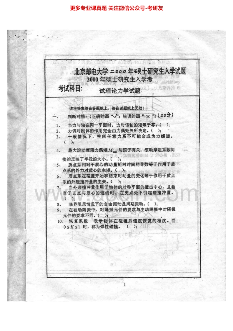 北京邮电大学808力学:理论力学1999-2008、2010考研真题汇编猴哥6个月前发布关注私信18.81MB36页04535北京邮电大学808力学:理论力学1999-2008、2010考研真题汇编此内容为免费资源,请登录后查看¥0 登录查看免费资源 第1页 / 共36页 第2页 / 共36页 第3页 / 共36页 第4页 / 共36页 第5页 / 共36页 该文档为免费文档,您可直接下载完整版进行阅读 © 版权声明文章版权归作者所有,未经允许请勿转载。THE END《北京邮电大学》(808)理论力学考研资料考研专业课 喜欢就支持一下吧点赞35赞赏 分享QQ空间微博QQ好友海报分享复制链接收藏