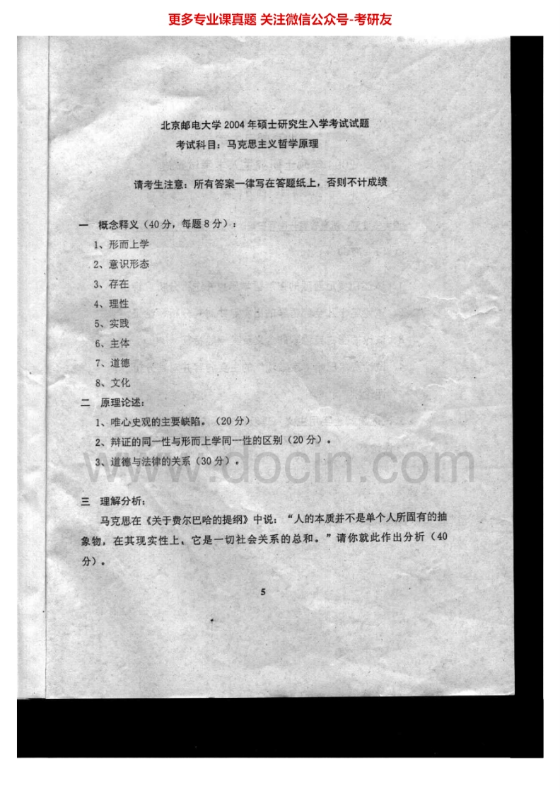 北京邮电大学616马克思主义原理2003-2008考研真题汇编.Image.Marked
