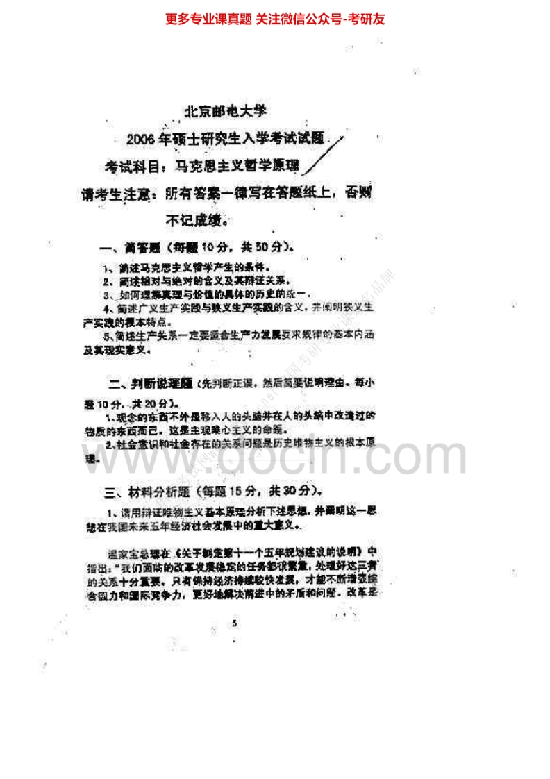 北京邮电大学616马克思主义原理2003-2008考研真题汇编.Image.Marked-学习资源网 - 分享优质学习资料