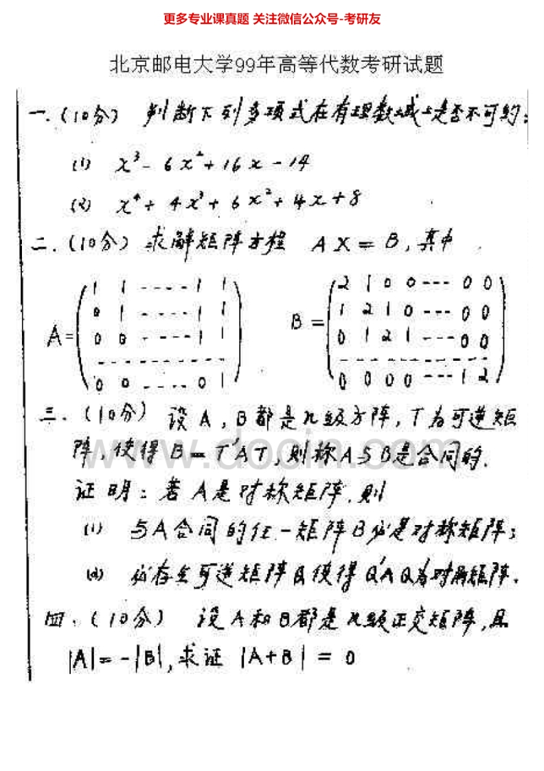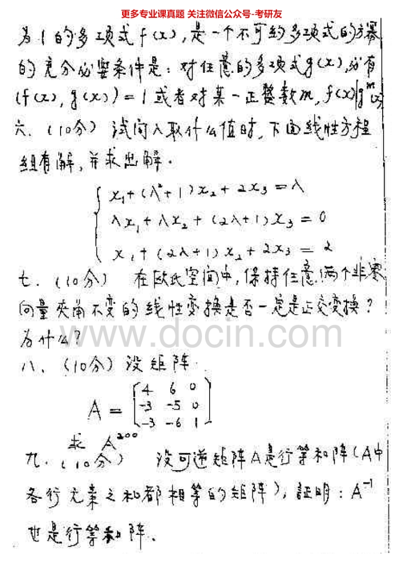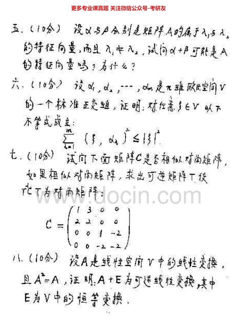 北京邮电大学816高等代数1998-2010、2012考研真题汇编.Image.Marked猴哥6个月前发布关注私信14.08MB31页09538北京邮电大学816高等代数1998-2010、2012考研真题汇编.Image.Marked此内容为免费资源,请登录后查看¥0 登录查看免费资源 第1页 / 共31页 第2页 / 共31页 第3页 / 共31页 第4页 / 共31页 第5页 / 共31页 该文档为免费文档,您可直接下载完整版进行阅读 © 版权声明文章版权归作者所有,未经允许请勿转载。THE END《北京邮电大学》(816)高等代数考研资料考研专业课 喜欢就支持一下吧点赞38赞赏 分享QQ空间微博QQ好友海报分享复制链接收藏