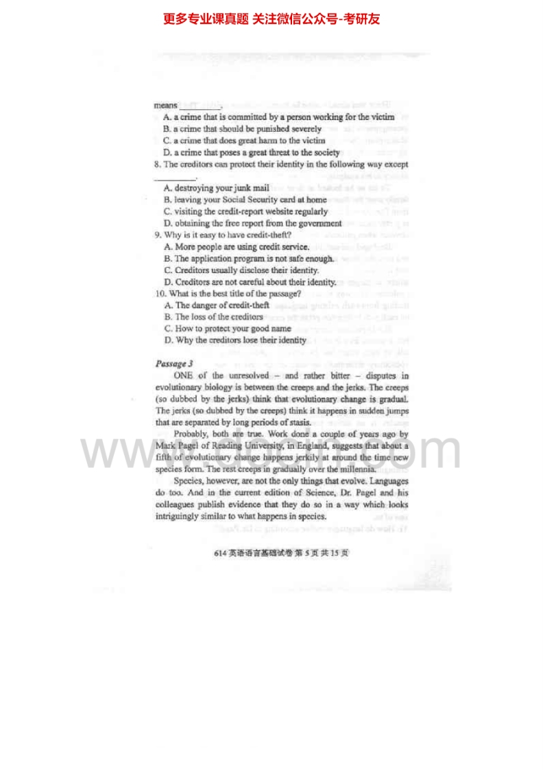 北京邮电大学614英语语言基础2006-2012考研真题汇编.Image.Marked猴哥6个月前发布关注私信27.25MB76页08254北京邮电大学614英语语言基础2006-2012考研真题汇编.Image.Marked此内容为免费资源,请登录后查看¥0 登录查看免费资源 第1页 / 共76页 第2页 / 共76页 第3页 / 共76页 第4页 / 共76页 第5页 / 共76页 该文档为免费文档,您可直接下载完整版进行阅读 © 版权声明文章版权归作者所有,未经允许请勿转载。THE END《北京邮电大学》(614)英语语言基础考研资料考研专业课 喜欢就支持一下吧点赞54赞赏 分享QQ空间微博QQ好友海报分享复制链接收藏