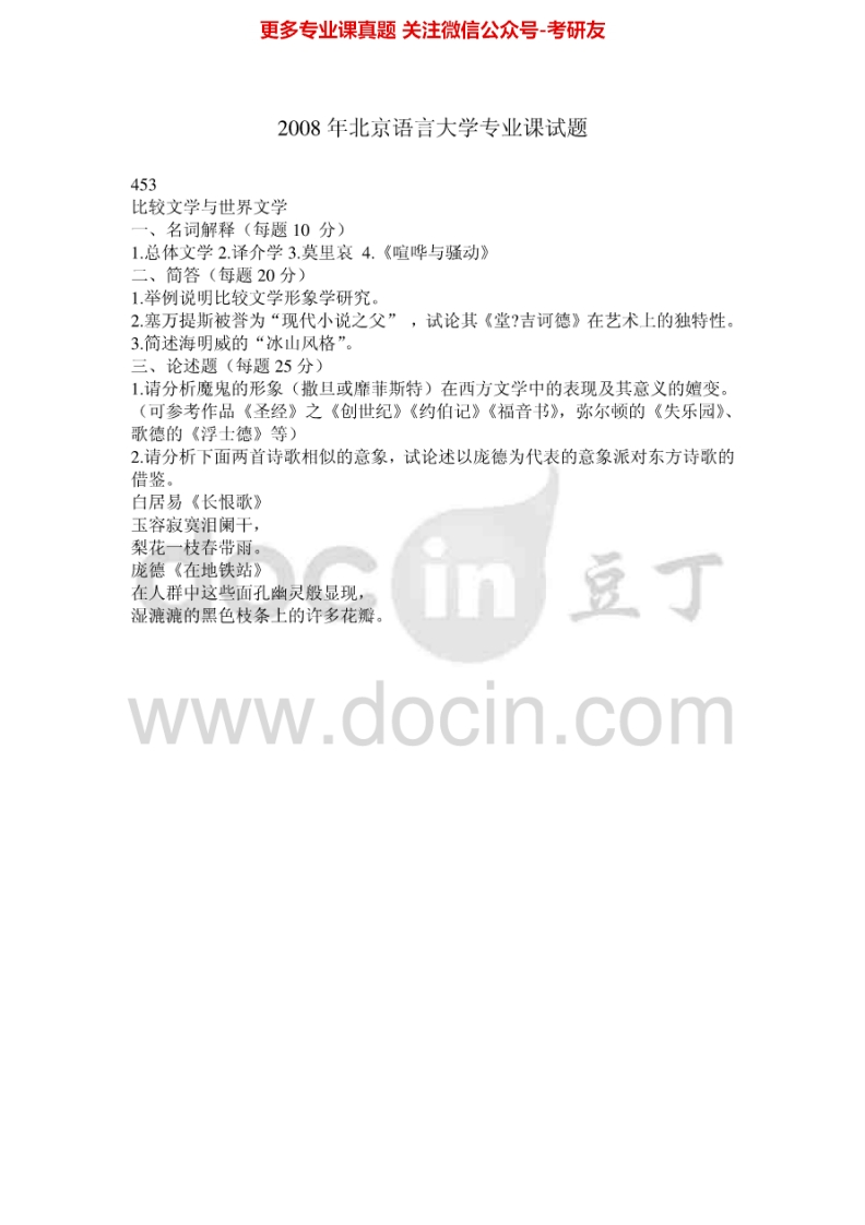 北京语言大学现代汉语和古代汉语2000-2001、2003-2008、2013考研真题汇编.Image.Marked猴哥6个月前发布关注私信5.35MB29页04841北京语言大学现代汉语和古代汉语2000-2001、2003-2008、2013考研真题汇编.Image.Marked此内容为免费资源,请登录后查看¥0 登录查看免费资源 第1页 / 共29页 第2页 / 共29页 第3页 / 共29页 第4页 / 共29页 第5页 / 共29页 该文档为免费文档,您可直接下载完整版进行阅读 © 版权声明文章版权归作者所有,未经允许请勿转载。THE END考研专业课 喜欢就支持一下吧点赞41赞赏 分享QQ空间微博QQ好友海报分享复制链接收藏
