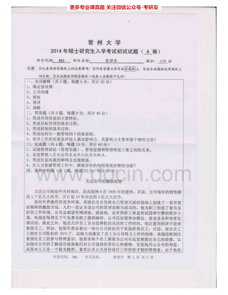 常州大学881管理学2012-2015考研真题汇编.Image.Marked猴哥6个月前发布关注私信2.60MB8页08840常州大学881管理学2012-2015考研真题汇编.Image.Marked此内容为免费资源,请登录后查看¥0 登录查看免费资源 第1页 / 共8页 第2页 / 共8页 第3页 / 共8页 第4页 / 共8页 第5页 / 共8页 该文档为免费文档,您可直接下载完整版进行阅读 © 版权声明文章版权归作者所有,未经允许请勿转载。THE END《常州大学》(881)管理学考研资料考研专业课 喜欢就支持一下吧点赞40赞赏 分享QQ空间微博QQ好友海报分享复制链接收藏