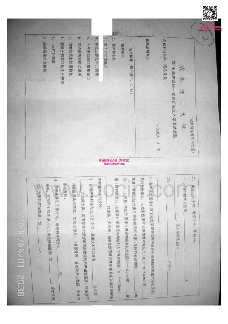 成都理工大学遥感导论2004-2007考研真题汇编-学习资源网 - 分享优质学习资料