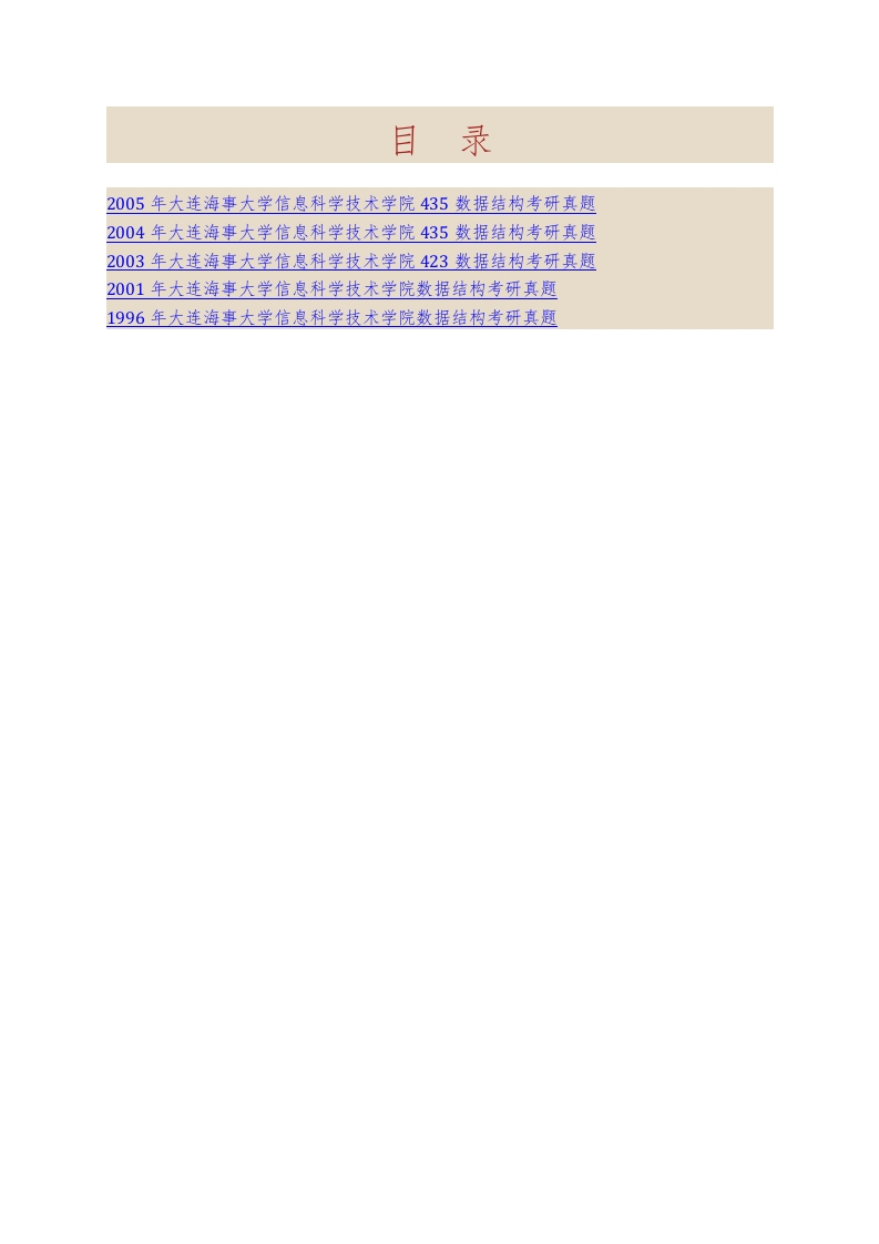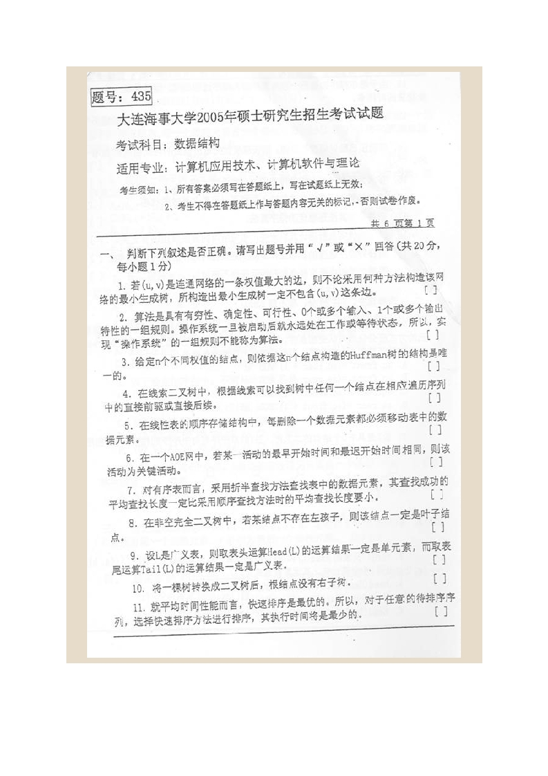 大连海事大学信息科学技术学院811数据结构历年考研真题汇编猴哥6个月前发布关注私信1.21MB25页09137大连海事大学信息科学技术学院811数据结构历年考研真题汇编此内容为免费资源,请登录后查看¥0 登录查看免费资源 第1页 / 共25页 第2页 / 共25页 第3页 / 共25页 第4页 / 共25页 第5页 / 共25页 该文档为免费文档,您可直接下载完整版进行阅读 © 版权声明文章版权归作者所有,未经允许请勿转载。THE END《大连海事大学》(811)管理信息系统与数据结构考研资料考研专业课 喜欢就支持一下吧点赞37赞赏 分享QQ空间微博QQ好友海报分享复制链接收藏