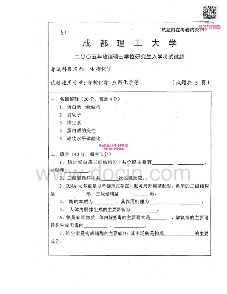 成都理工大学338生物化学2004-2005考研真题汇编猴哥6个月前发布关注私信1.31MB6页09738成都理工大学338生物化学2004-2005考研真题汇编此内容为免费资源,请登录后查看¥0 登录查看免费资源 第1页 / 共6页 第2页 / 共6页 第3页 / 共6页 第4页 / 共6页 第5页 / 共6页 该文档为免费文档,您可直接下载完整版进行阅读 © 版权声明文章版权归作者所有,未经允许请勿转载。THE END《成都理工大学》(338)生物化学考研资料考研专业课 喜欢就支持一下吧点赞38赞赏 分享QQ空间微博QQ好友海报分享复制链接收藏
