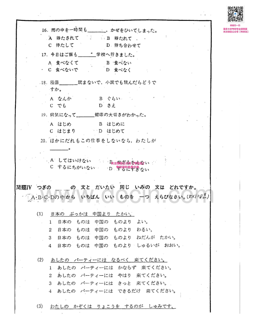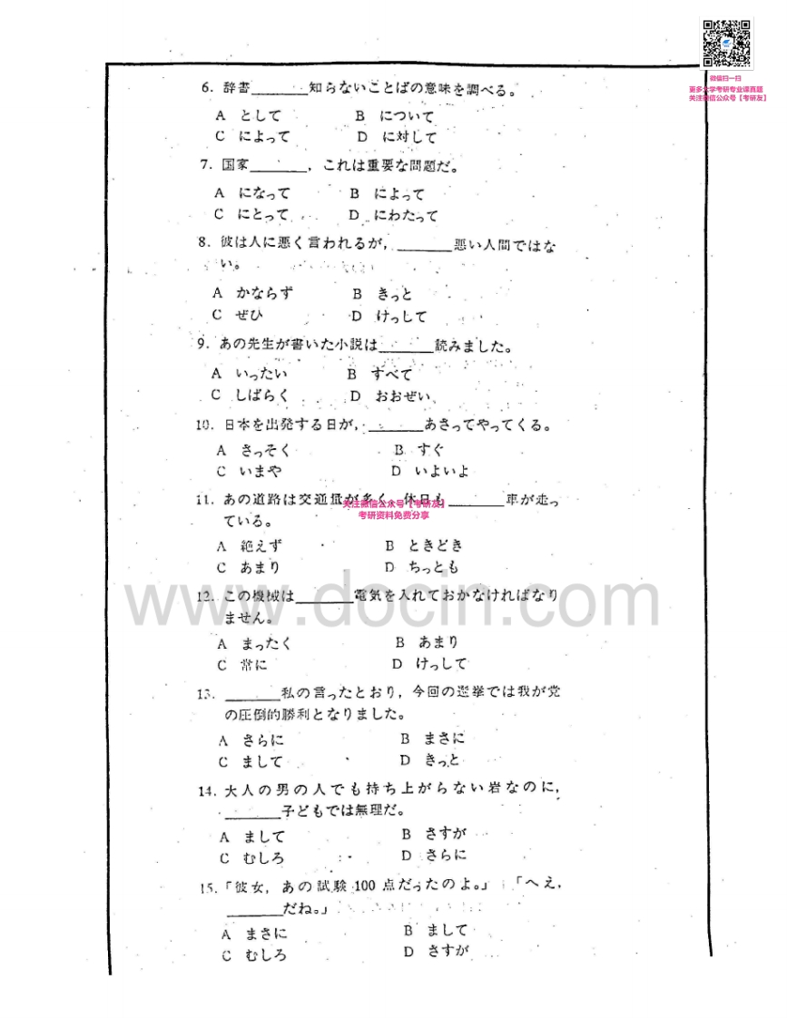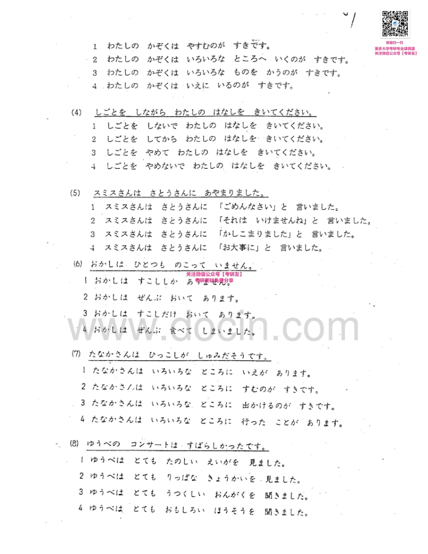 成都理工大学263日语(第二外语)2004-2005考研真题汇编猴哥6个月前发布关注私信4.22MB21页05158成都理工大学263日语(第二外语)2004-2005考研真题汇编此内容为免费资源,请登录后查看¥0 登录查看免费资源 第1页 / 共21页 第2页 / 共21页 第3页 / 共21页 第4页 / 共21页 第5页 / 共21页 该文档为免费文档,您可直接下载完整版进行阅读 © 版权声明文章版权归作者所有,未经允许请勿转载。THE END考研专业课 喜欢就支持一下吧点赞58赞赏 分享QQ空间微博QQ好友海报分享复制链接收藏