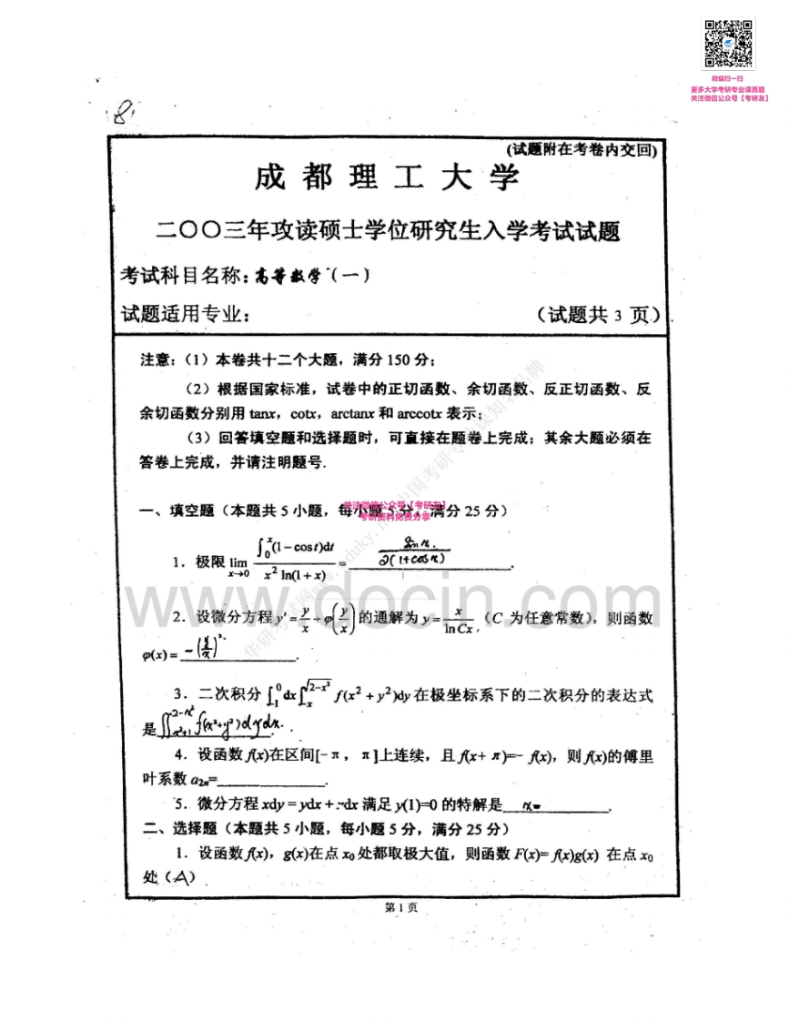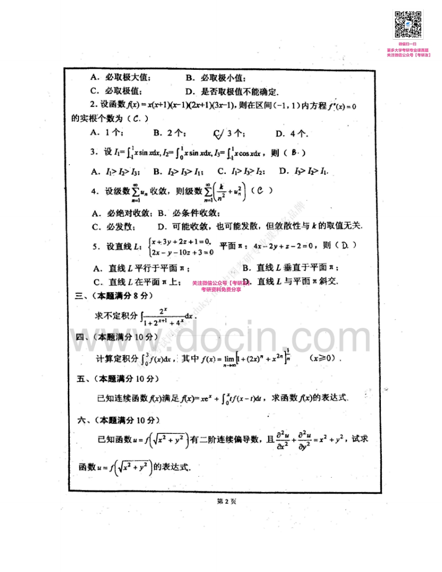 成都理工大学601高等数学:高数一2002-2005高数二2000-2005考研真题汇编猴哥6个月前发布关注私信9.17MB35页09711成都理工大学601高等数学:高数一2002-2005高数二2000-2005考研真题汇编此内容为免费资源,请登录后查看¥0 登录查看免费资源 第1页 / 共35页 第2页 / 共35页 第3页 / 共35页 第4页 / 共35页 第5页 / 共35页 该文档为免费文档,您可直接下载完整版进行阅读 © 版权声明文章版权归作者所有,未经允许请勿转载。THE END《成都理工大学》(601)高等数学考研资料考研专业课 喜欢就支持一下吧点赞11赞赏 分享QQ空间微博QQ好友海报分享复制链接收藏