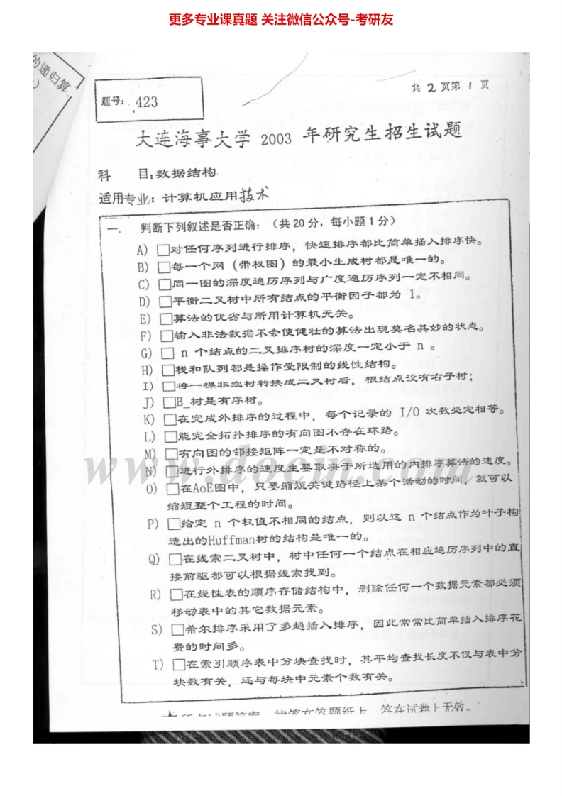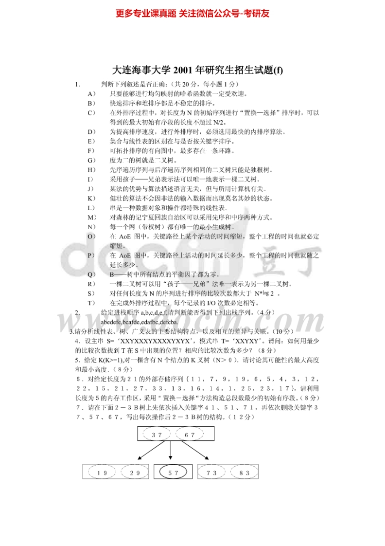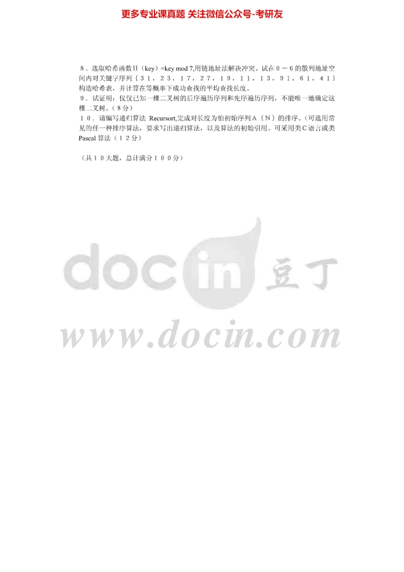 大连海事大学数据结构历年真题1996、2001、2003-2005考研真题汇编猴哥6个月前发布关注私信5.25MB18页08951大连海事大学数据结构历年真题1996、2001、2003-2005考研真题汇编此内容为免费资源,请登录后查看¥0 登录查看免费资源 第1页 / 共18页 第2页 / 共18页 第3页 / 共18页 第4页 / 共18页 第5页 / 共18页 该文档为免费文档,您可直接下载完整版进行阅读 © 版权声明文章版权归作者所有,未经允许请勿转载。THE END考研专业课 喜欢就支持一下吧点赞51赞赏 分享QQ空间微博QQ好友海报分享复制链接收藏