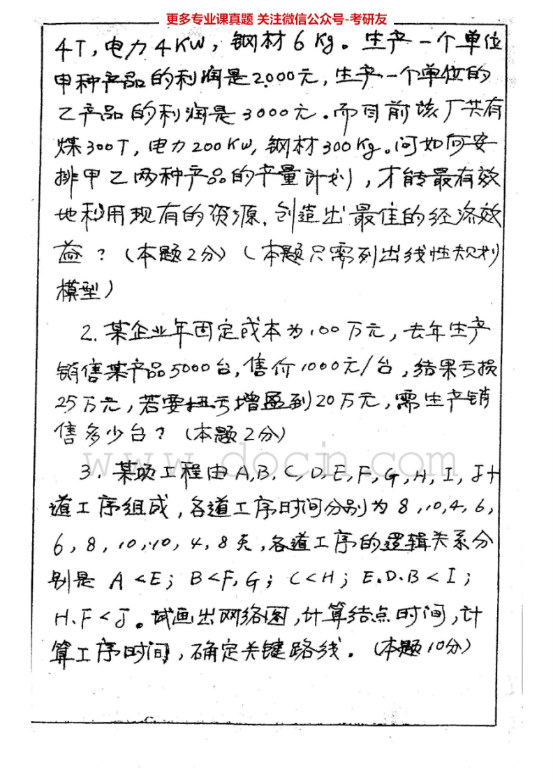 大连海事大学管理运筹学历年真题(运筹学2000-2008、2012管理学1999-2003)考研真题汇编.Image.Marked猴哥6个月前发布关注私信20.64MB47页04227大连海事大学管理运筹学历年真题(运筹学2000-2008、2012管理学1999-2003)考研真题汇编.Image.Marked此内容为免费资源,请登录后查看¥0 登录查看免费资源 第1页 / 共47页 第2页 / 共47页 第3页 / 共47页 第4页 / 共47页 第5页 / 共47页 该文档为免费文档,您可直接下载完整版进行阅读 © 版权声明文章版权归作者所有,未经允许请勿转载。THE END考研专业课 喜欢就支持一下吧点赞27赞赏 分享QQ空间微博QQ好友海报分享复制链接收藏