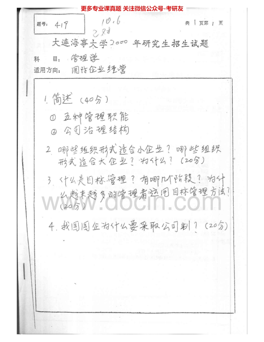 大连海事大学814管理学1999-2003考研真题汇编.Image.Marked猴哥6个月前发布关注私信2.21MB8页08530大连海事大学814管理学1999-2003考研真题汇编.Image.Marked此内容为免费资源,请登录后查看¥0 登录查看免费资源 第1页 / 共8页 第2页 / 共8页 第3页 / 共8页 第4页 / 共8页 第5页 / 共8页 该文档为免费文档,您可直接下载完整版进行阅读 © 版权声明文章版权归作者所有,未经允许请勿转载。THE END《大连海事大学》(814)财务管理考研资料考研专业课 喜欢就支持一下吧点赞30赞赏 分享QQ空间微博QQ好友海报分享复制链接收藏