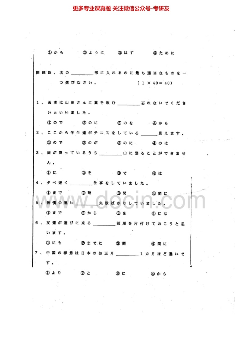 大连外国语大学二外日语历年真题2000-2004考研真题汇编.Image.Marked猴哥6个月前发布关注私信11.97MB47页08911大连外国语大学二外日语历年真题2000-2004考研真题汇编.Image.Marked此内容为免费资源,请登录后查看¥0 登录查看免费资源 第1页 / 共47页 第2页 / 共47页 第3页 / 共47页 第4页 / 共47页 第5页 / 共47页 该文档为免费文档,您可直接下载完整版进行阅读 © 版权声明文章版权归作者所有,未经允许请勿转载。THE END考研专业课 喜欢就支持一下吧点赞11赞赏 分享QQ空间微博QQ好友海报分享复制链接收藏