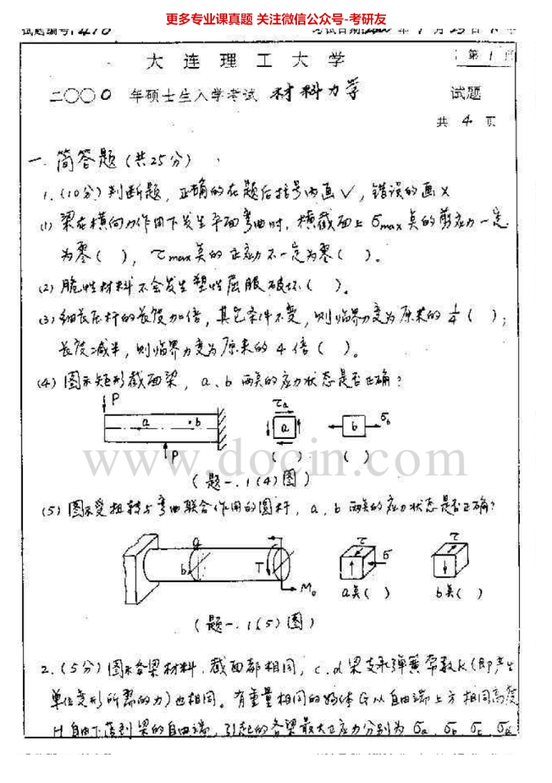大连理工大学材料力学历年真题1999-2005、2010、2012考研真题汇编.Image.Marked猴哥6个月前发布关注私信9.36MB33页09632大连理工大学材料力学历年真题1999-2005、2010、2012考研真题汇编.Image.Marked此内容为免费资源,请登录后查看¥0 登录查看免费资源 第1页 / 共33页 第2页 / 共33页 第3页 / 共33页 第4页 / 共33页 第5页 / 共33页 该文档为免费文档,您可直接下载完整版进行阅读 © 版权声明文章版权归作者所有,未经允许请勿转载。THE END考研专业课 喜欢就支持一下吧点赞32赞赏 分享QQ空间微博QQ好友海报分享复制链接收藏