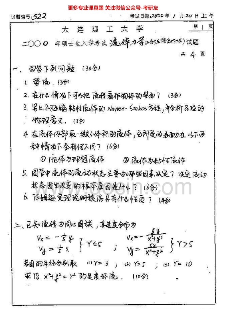大连理工大学流体力学历年真题1999-2005考研真题汇编.Image.Marked-学习资源网 - 分享优质学习资料