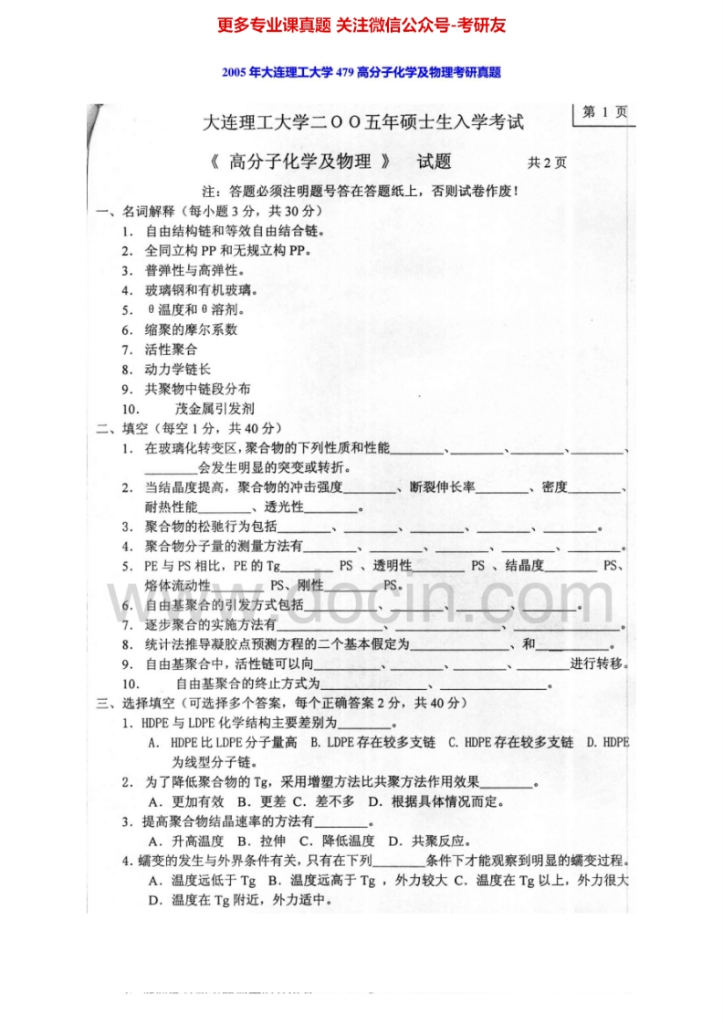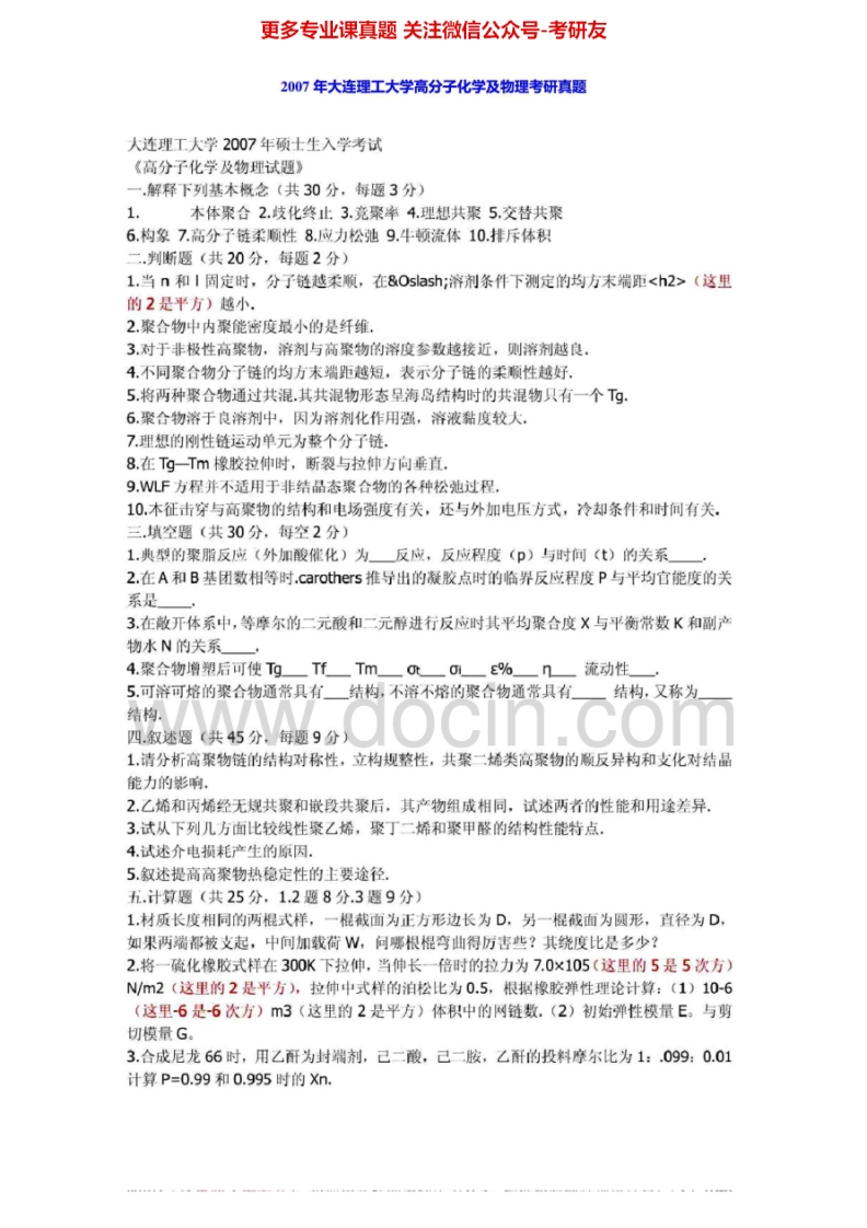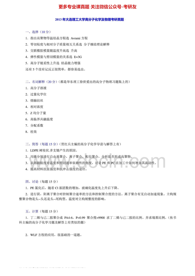 大连理工大学879高分子化学及物理2002-2005、2007、回忆版2013-2014年考研真题汇编.Image.Marked猴哥6个月前发布关注私信3.25MB13页08455大连理工大学879高分子化学及物理2002-2005、2007、回忆版2013-2014年考研真题汇编.Image.Marked此内容为免费资源,请登录后查看¥0 登录查看免费资源 第1页 / 共13页 第2页 / 共13页 第3页 / 共13页 第4页 / 共13页 第5页 / 共13页 该文档为免费文档,您可直接下载完整版进行阅读 © 版权声明文章版权归作者所有,未经允许请勿转载。THE END《大连理工大学》(879)高分子化学及物理考研资料考研专业课 喜欢就支持一下吧点赞55赞赏 分享QQ空间微博QQ好友海报分享复制链接收藏