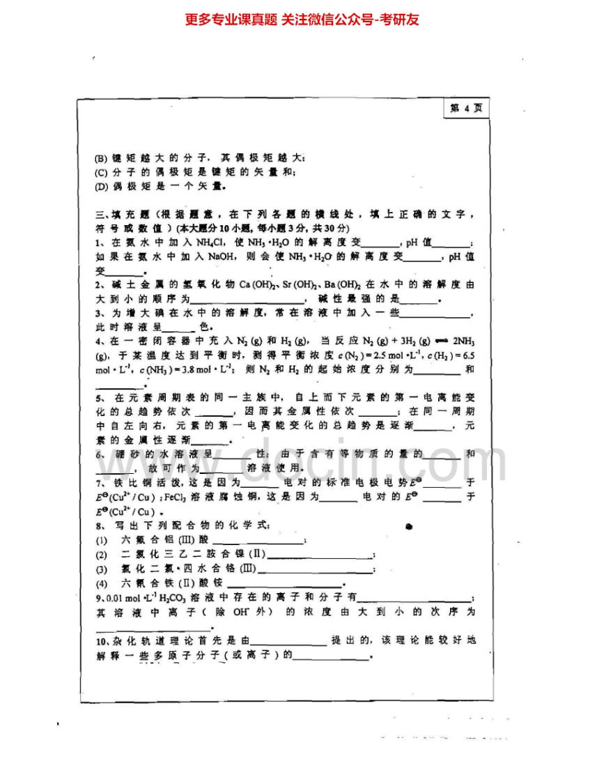 大连理工大学630无机化学及无机化学实验2003-2005、2010考研真题汇编.Image.Marked猴哥6个月前发布关注私信5.55MB16页05641大连理工大学630无机化学及无机化学实验2003-2005、2010考研真题汇编.Image.Marked此内容为免费资源,请登录后查看¥0 登录查看免费资源 第1页 / 共16页 第2页 / 共16页 第3页 / 共16页 第4页 / 共16页 第5页 / 共16页 该文档为免费文档,您可直接下载完整版进行阅读 © 版权声明文章版权归作者所有,未经允许请勿转载。THE END《大连理工大学》(630)无机化学及无机化学实验考研资料考研专业课 喜欢就支持一下吧点赞41赞赏 分享QQ空间微博QQ好友海报分享复制链接收藏