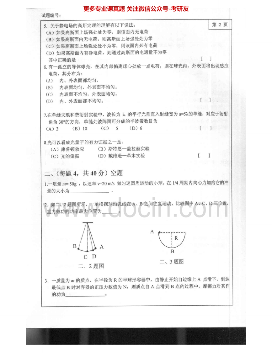 大连理工大学807普通物理学2000-2005考研真题汇编.Image.Marked猴哥6个月前发布关注私信7.37MB21页06550大连理工大学807普通物理学2000-2005考研真题汇编.Image.Marked此内容为免费资源,请登录后查看¥0 登录查看免费资源 第1页 / 共21页 第2页 / 共21页 第3页 / 共21页 第4页 / 共21页 第5页 / 共21页 该文档为免费文档,您可直接下载完整版进行阅读 © 版权声明文章版权归作者所有,未经允许请勿转载。THE END《大连理工大学》(807)普通物理学考研资料考研专业课 喜欢就支持一下吧点赞50赞赏 分享QQ空间微博QQ好友海报分享复制链接收藏